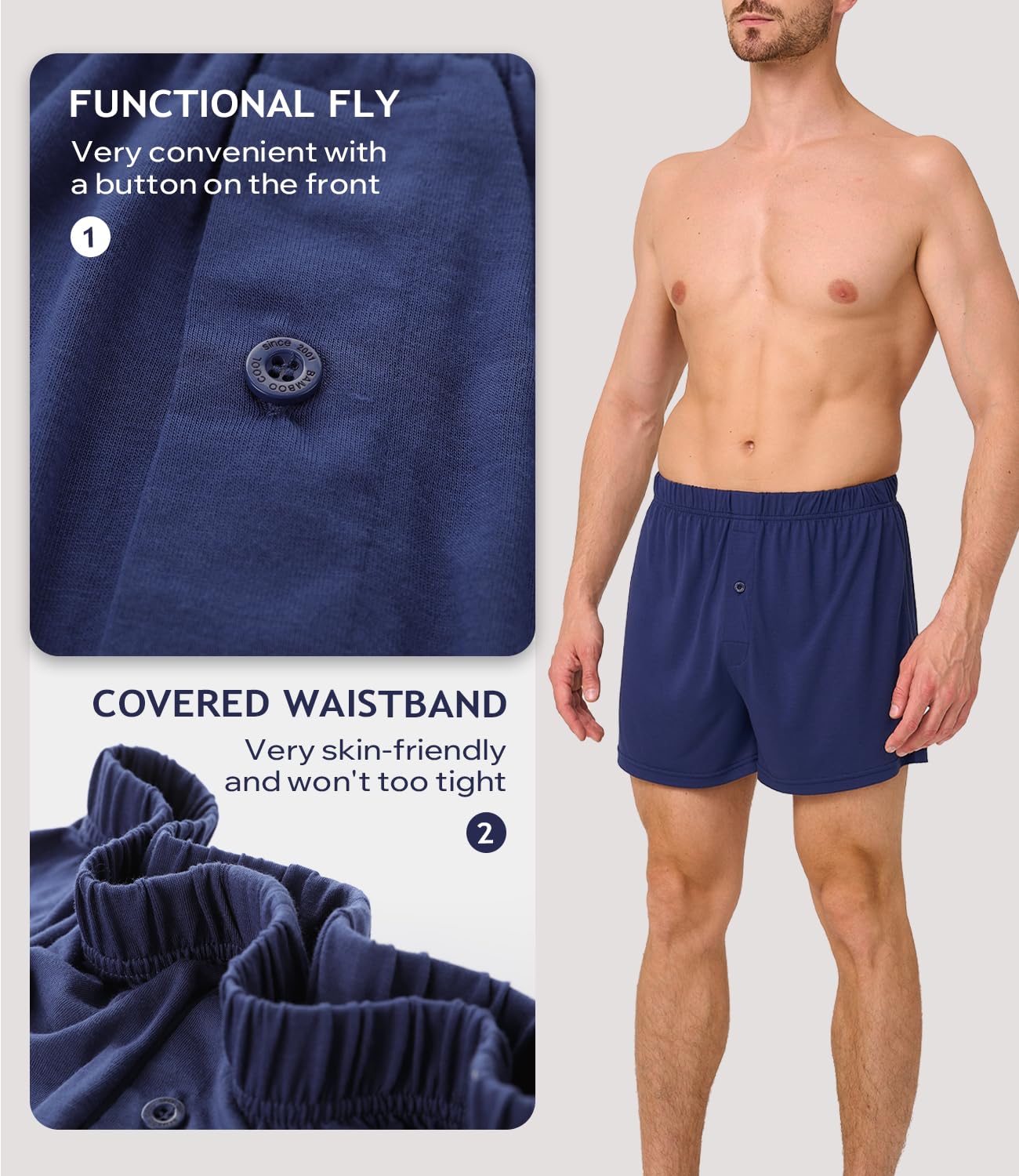 BAMBOO COOL Mens Boxers Durable Comfortable Boxer Shorts for Men Loose Ultra-Soft Men’s Underwear (3 or 5 Pack)