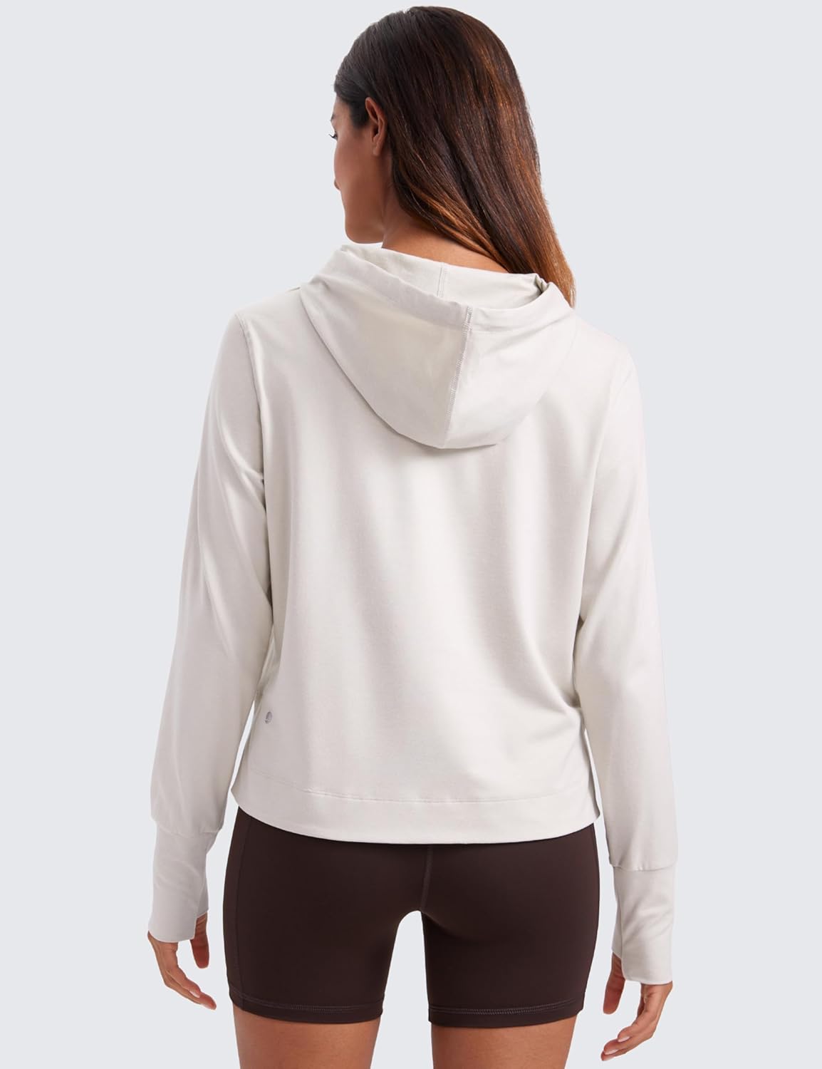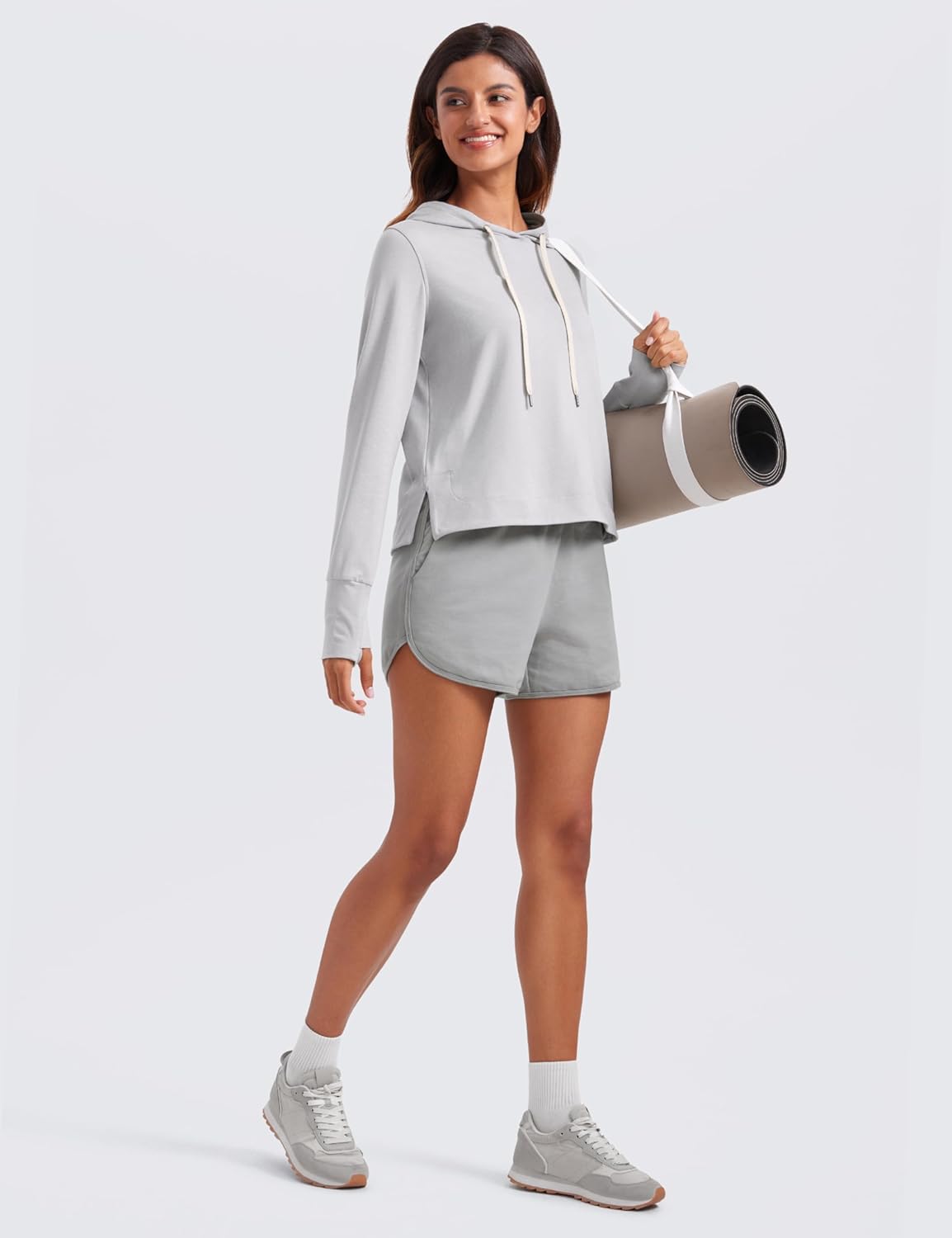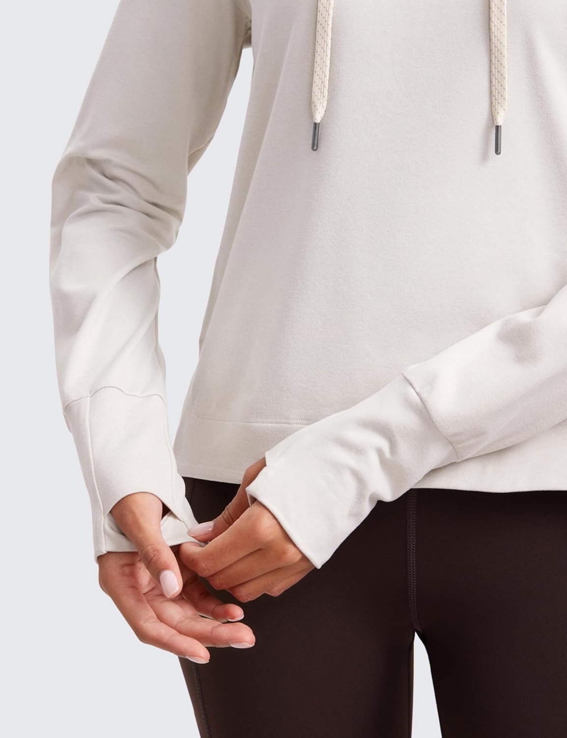CRZ YOGA Cloud Jersey Pullover Hoodies for Women Long Sleeve Hooded Workout Sweat Shirts Casual Yoga Tops with Thumb Holes