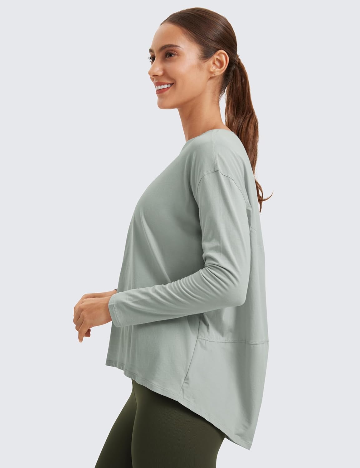 13 reviews for CRZ YOGA Pima Cotton Long Sleeve Workout Shirts for Women Loose Fit Athletic Yoga T-Shirts Casual Boat Neck Fall Tops