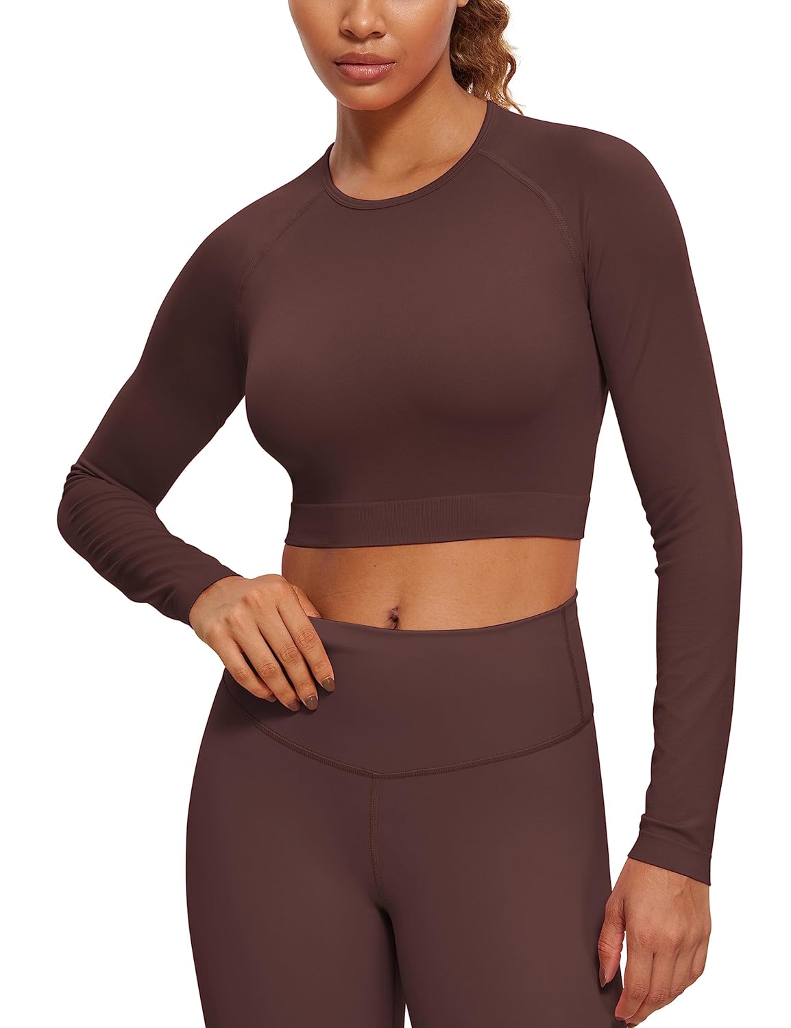 CRZ YOGA Seamless Long Sleeve Shirts for Women Workout Athletic Crop Tops Cropped Running Gym Yoga T-Shirts
