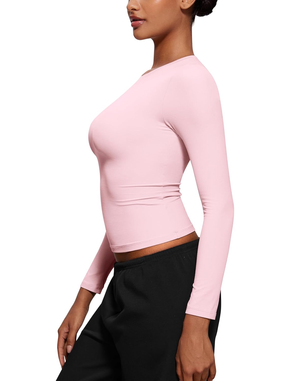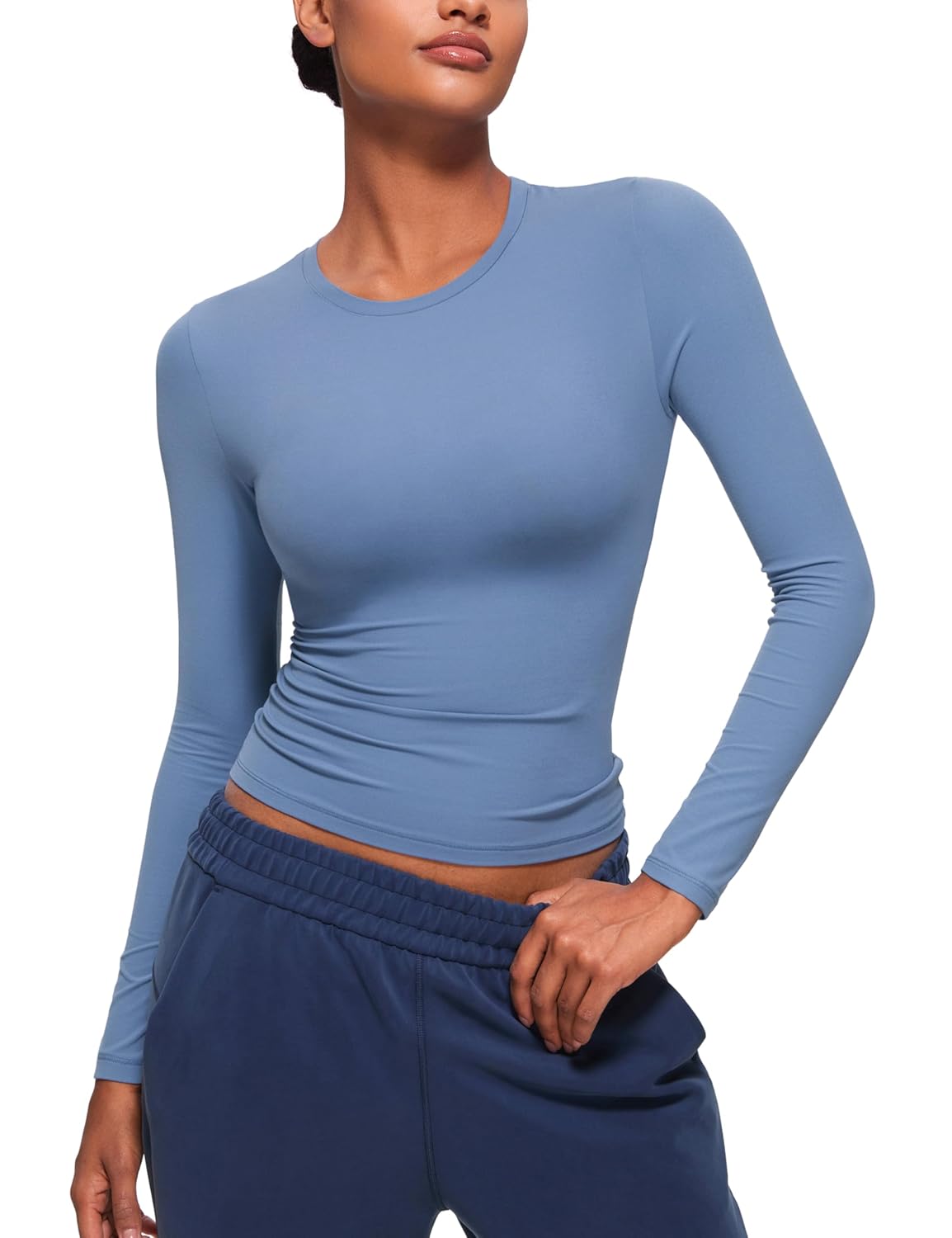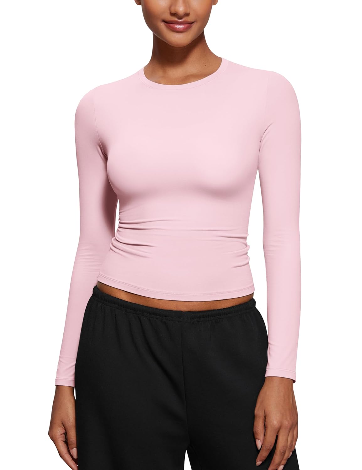 CRZ YOGA Softembrace Long Sleeve Shirts for Women Soft Crew Neck Fall Basic Tight Tops Fitted Casual Going Out T-Shirts