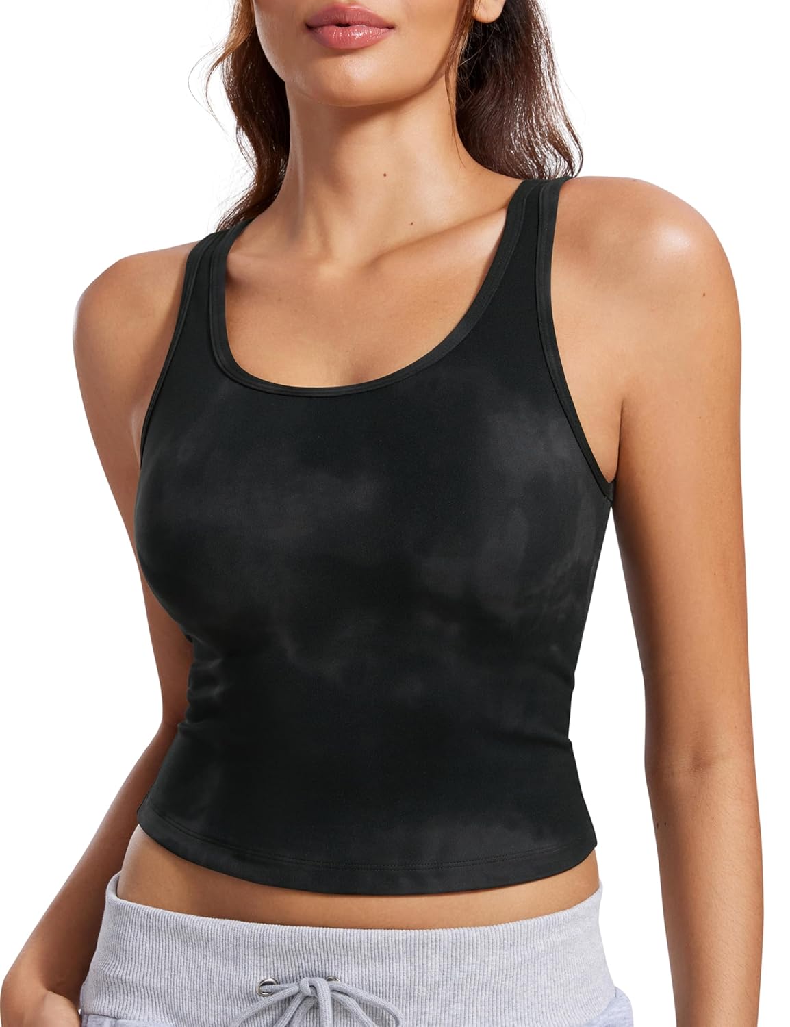 CRZ YOGA Womens Butterluxe Double Lined Workout Tank Tops Scoop Neck Racerback Cropped Casual Sleeveless Shirt