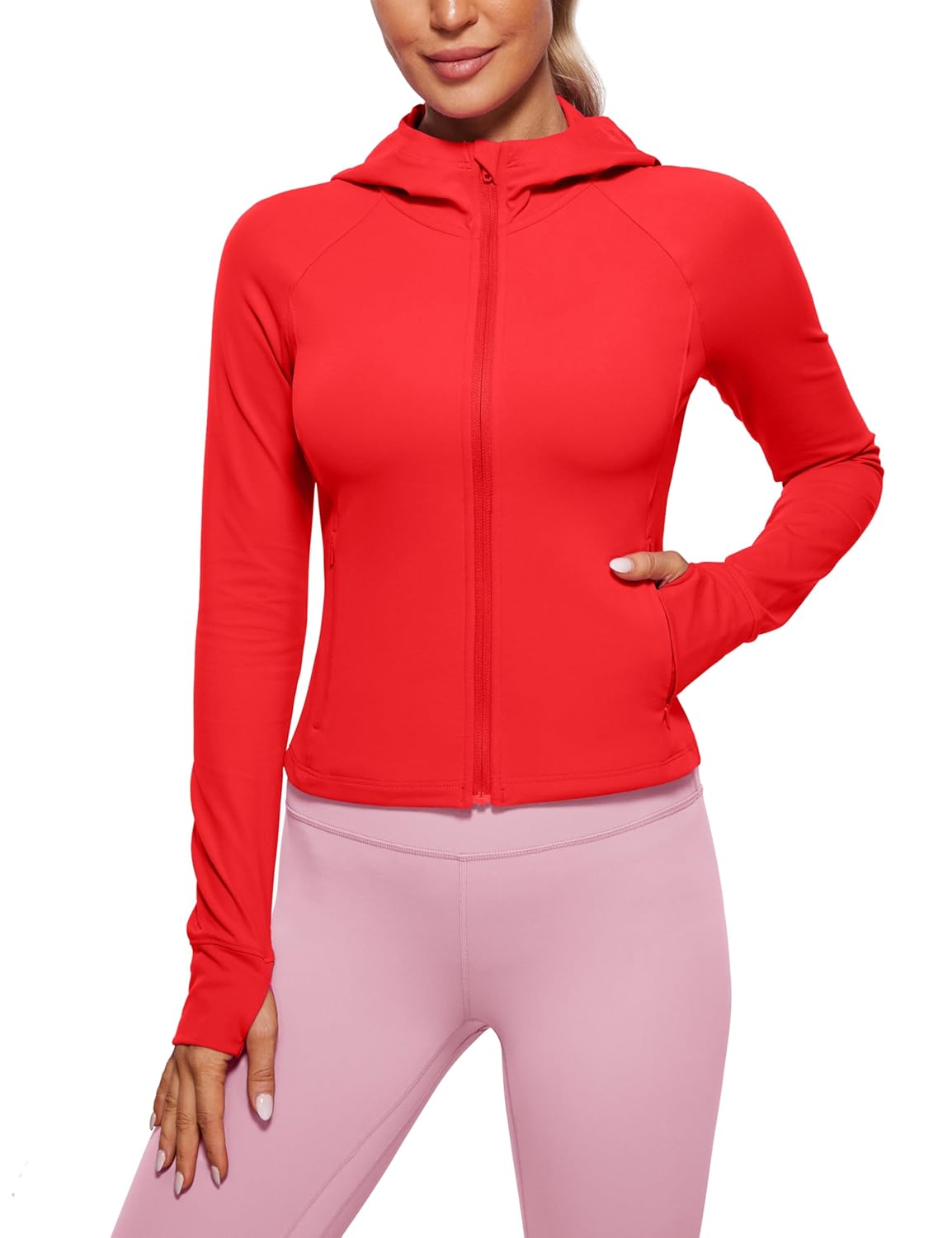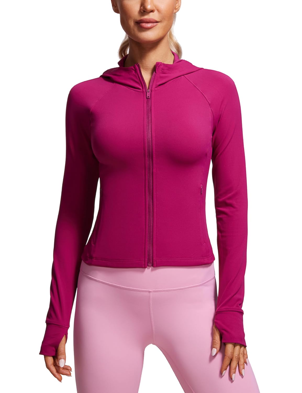 CRZ YOGA Womens Butterluxe Full Zip Workout Hoodie Jackets Slim Fit Hooded Athletic Yoga Lightweight Jacket with Thumb Holes