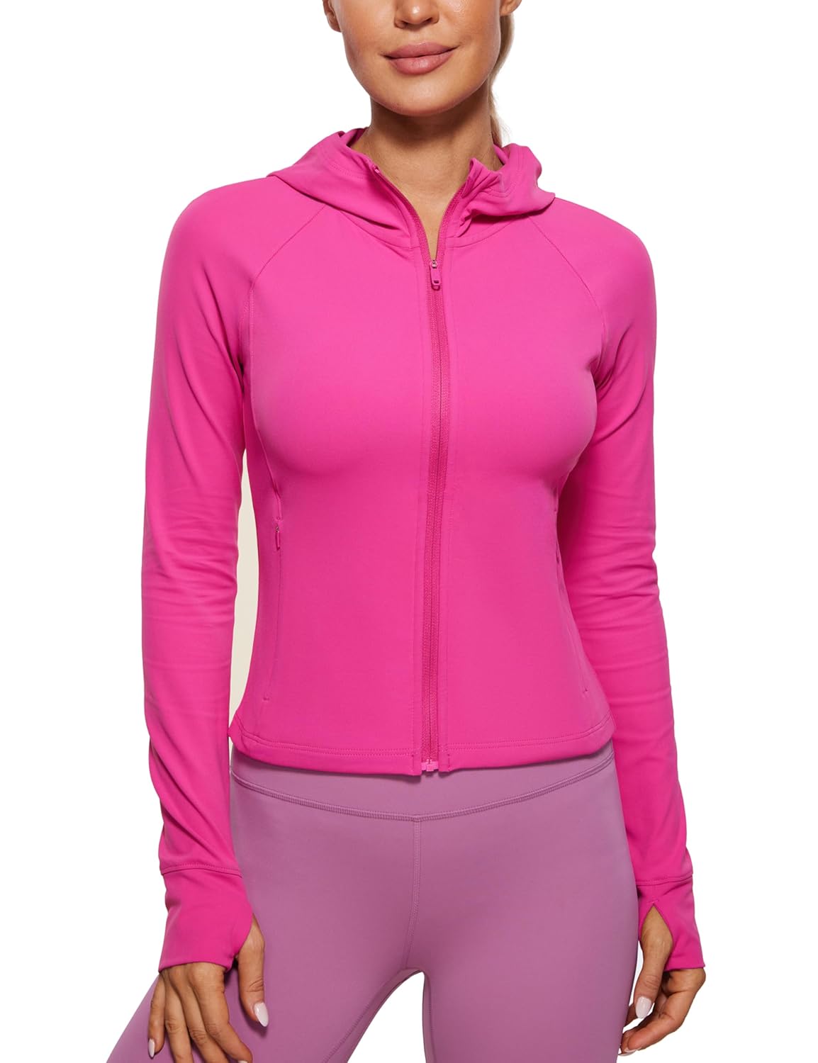 13 reviews for CRZ YOGA Womens Butterluxe Full Zip Workout Hoodie Jackets Slim Fit Hooded Athletic Yoga Lightweight Jacket with Thumb Holes