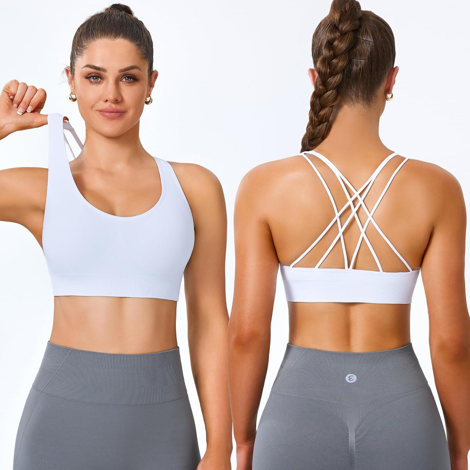 Evercute Cross Back Sport Bras Padded Strappy Medium Support Cropped Bras for Yoga Workout Fitness Bras