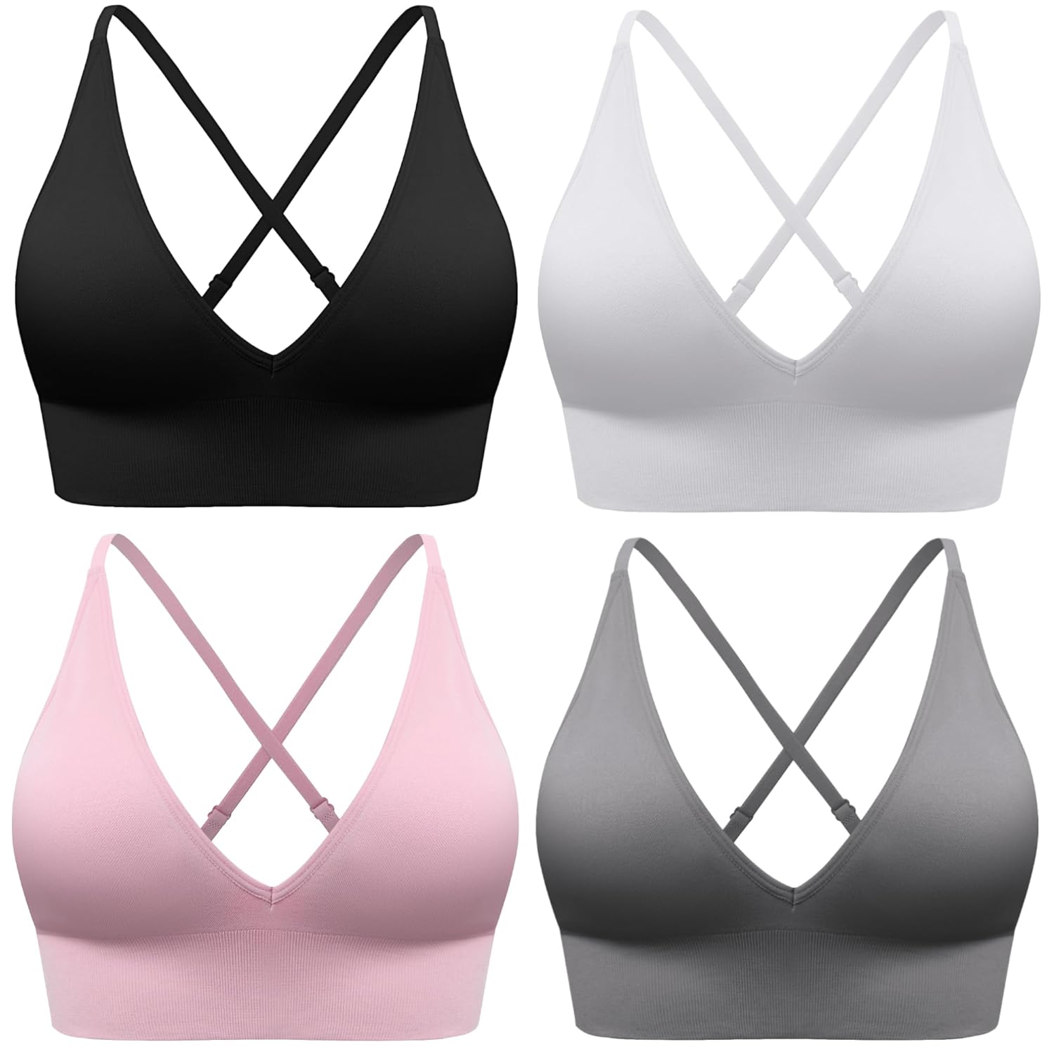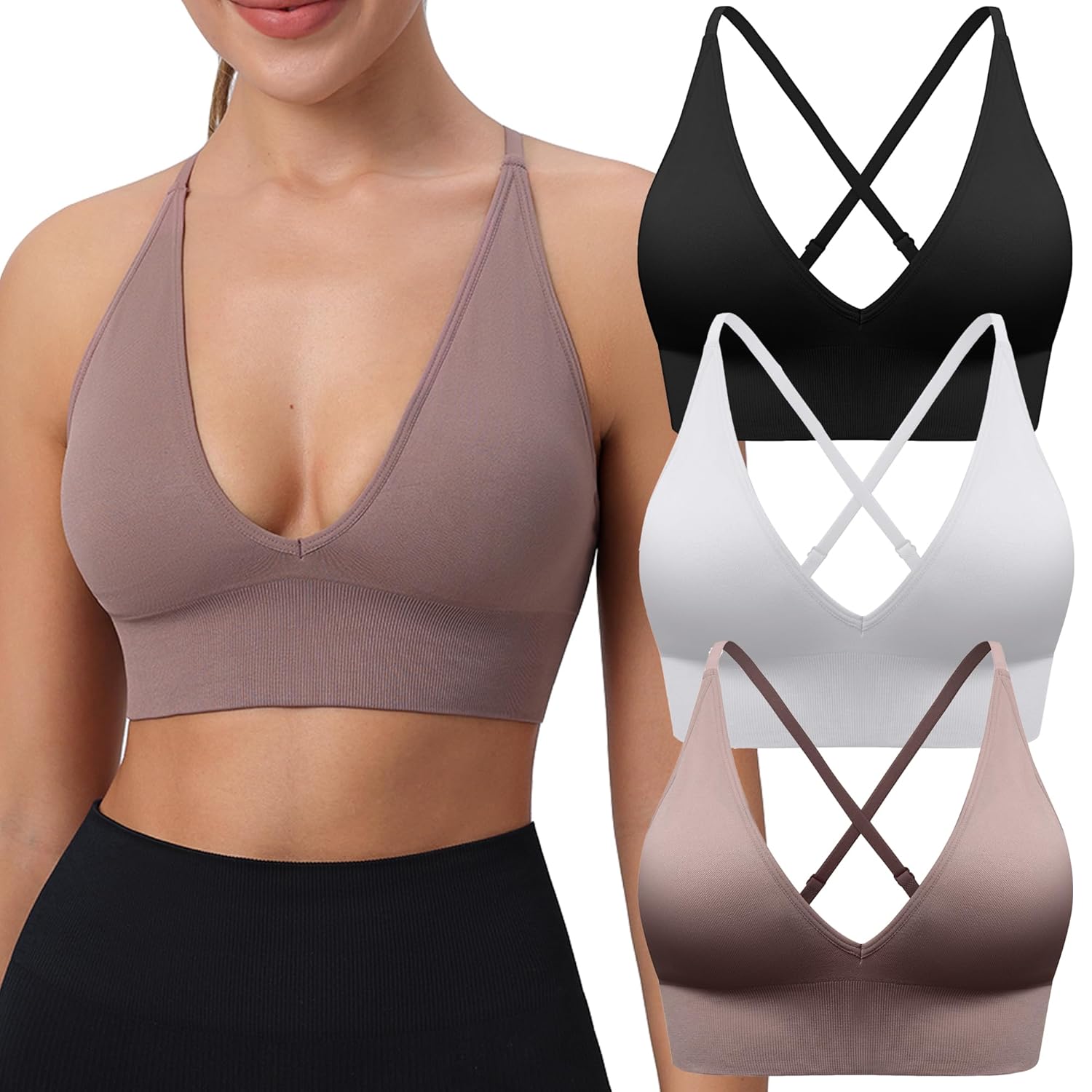 Evercute Women’s Sports Bras Adjustable Deep V Neck Bras Wireless Spaghetti Strap Criss Cross Padded Low Support Sexy Bras