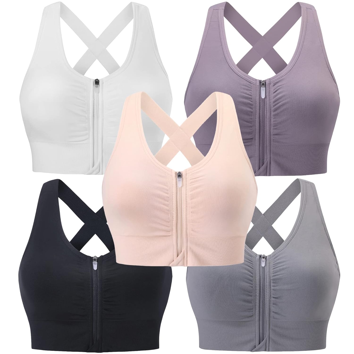 - YOUR NEW CHOICE:If you thought there were limited options for post-surgery sports bras, we hope to bring a smile to your face with our zip-front sports bras. They feature high-quality zippers that make it easy to put them on or take them off, especially when sweating profusely or after chest/shoulder surgery, or even while breastfeeding. This wireless sports bras also have a hook at the top of the zipper placket add extra security and ensure a comfortable, no-fuss fit.