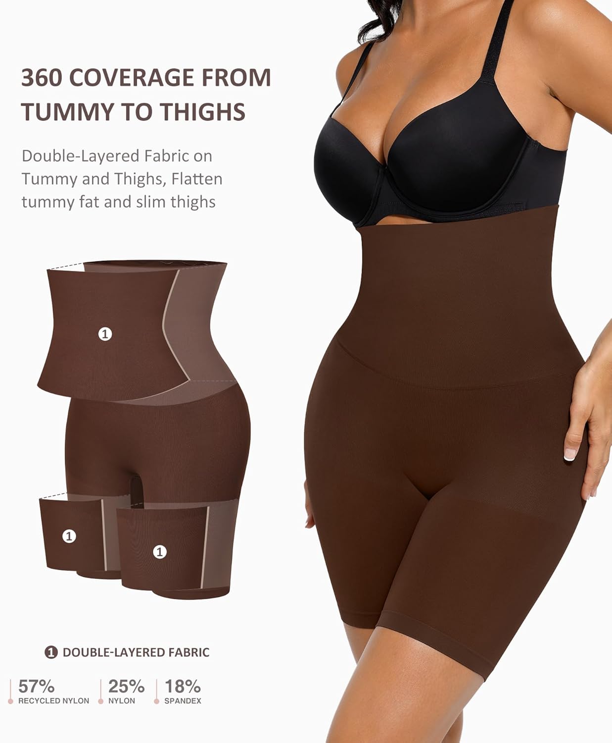 - HIGH WAIST SHAPEWEAR SHORTS: This shaping panties is high waist with double-layer fabrics around midsection design help to flatten your tummy, reduce your waistline and suck your stomach in with moderate compression, give you a smoother and slimmer look immediately.