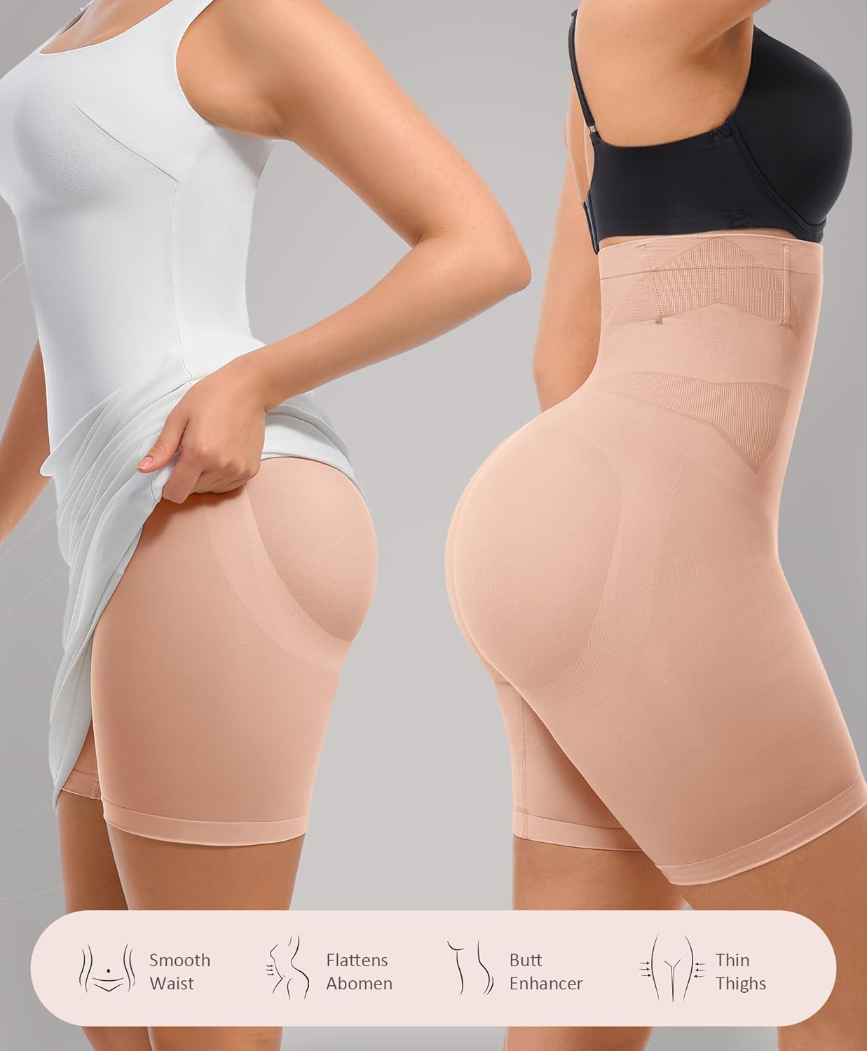 - PRETTY BUTT LIFTING PANTIES: Slip into our body shaper shorts for women and instantly smooth your body curves. Our butt lifting control panties feature a specialized design with a c-shaped pleat seam at the bottom to create a subtle lift and firmness, giving your rear a more full and rounded appearance, effortless lifting the booty and accentuating your natural curves.