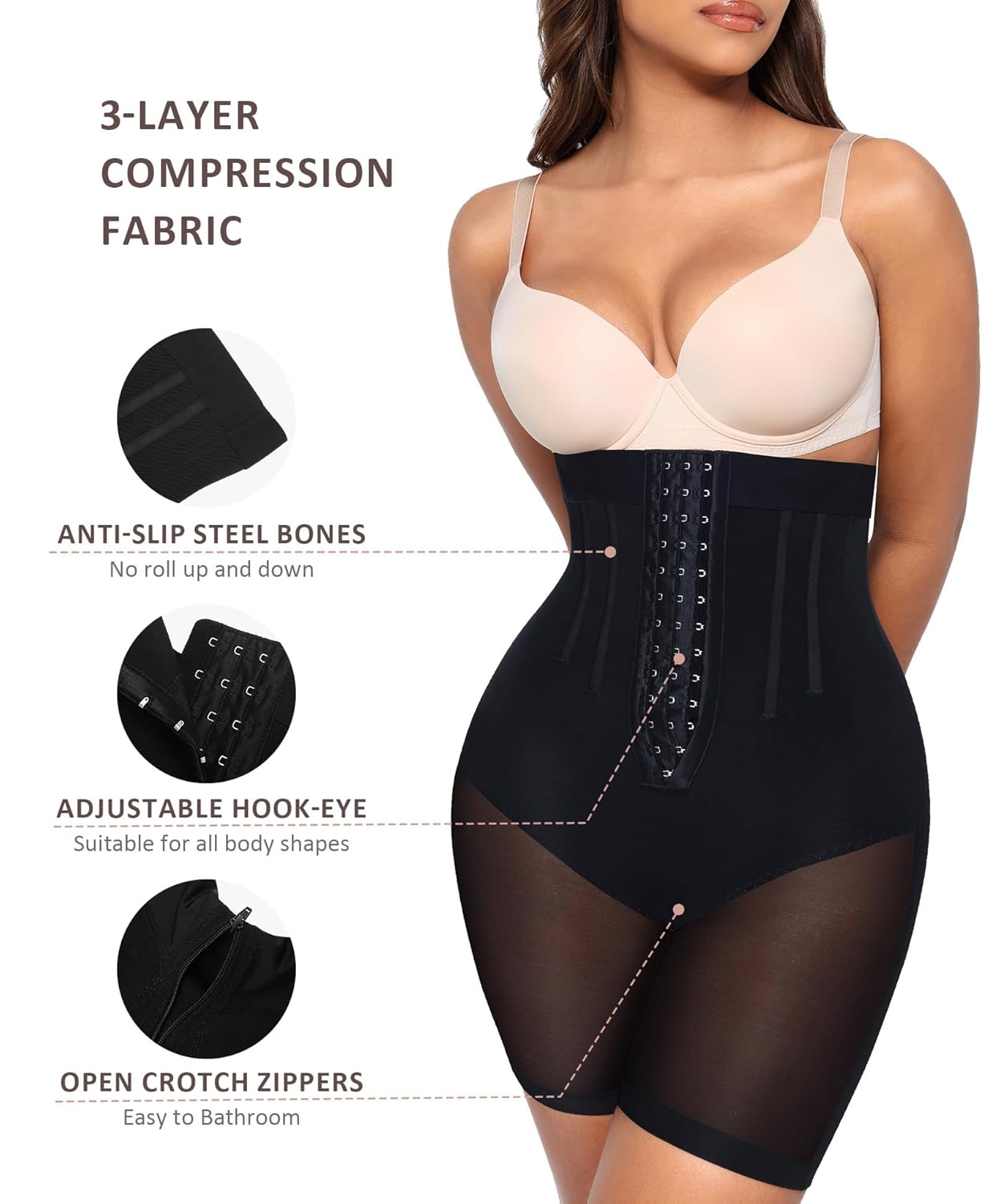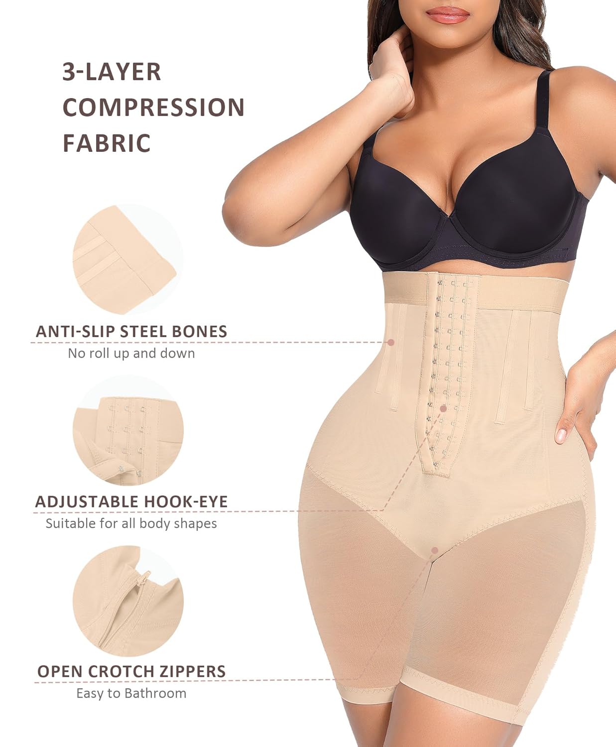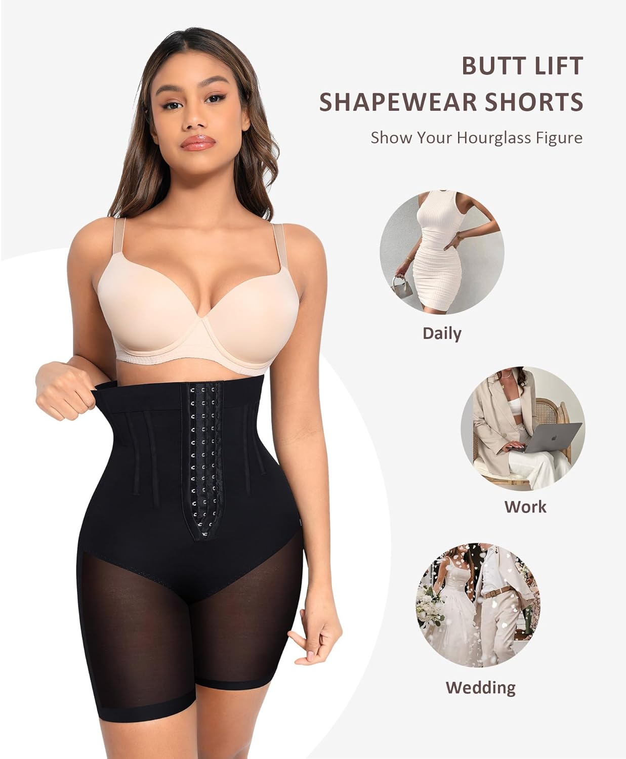 - 3 HOOK ROWS FOR LARGER ADJUST – Our shapewear shorts have 3 rows of hook closures so you can adjust the shorts to the compression you want and fit your body well, and the inside edge of the waist trainer features 4 plastic bones to ensure they stay in place without rolling.