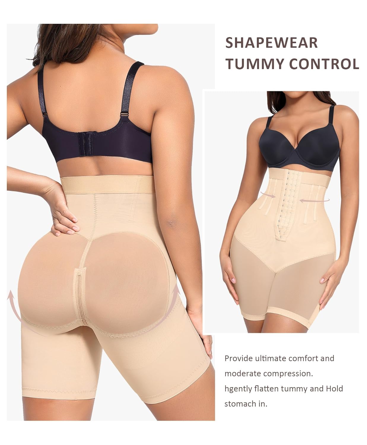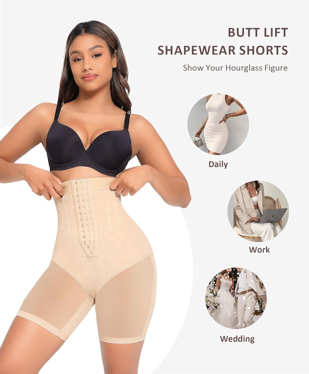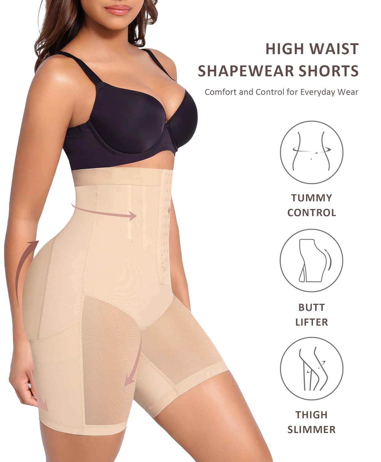 - 3 HOOK ROWS FOR LARGER ADJUST – Our shapewear shorts have 3 rows of hook closures so you can adjust the shorts to the compression you want and fit your body well, and the inside edge of the waist trainer features 4 plastic bones to ensure they stay in place without rolling.