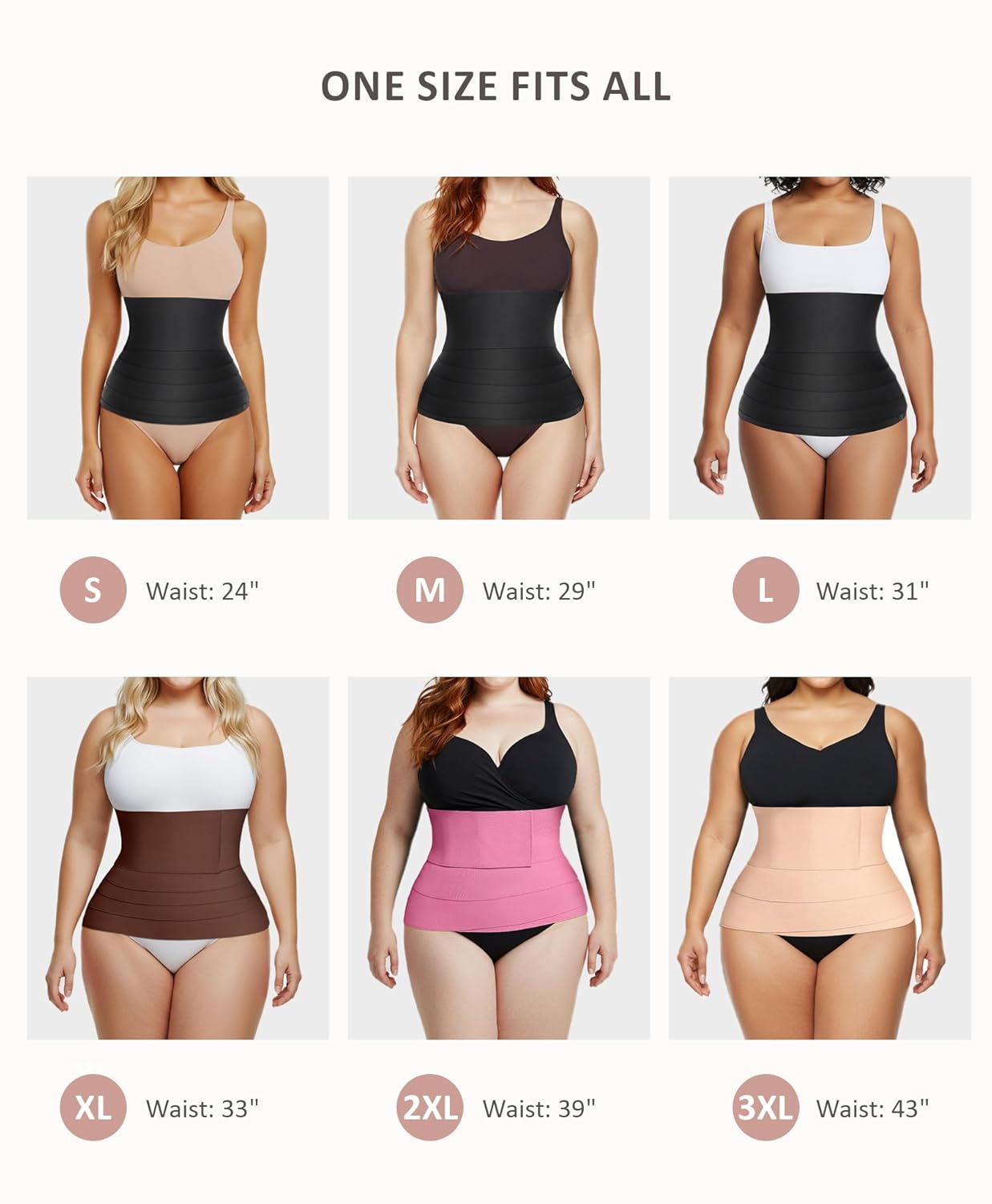 - One Size Fits All: Our waist trainer wrap is crafted with a one-size-fits-all design to accommodate for all size within 23Inch-47Inch waistline ! Measuring 13.1 feet long and 4.9 inches wide, this bandage wrap offers ample coverage to snatch your waist effortlessly. Plus, you can adjust the tightness to your preference for ultimate comfort.