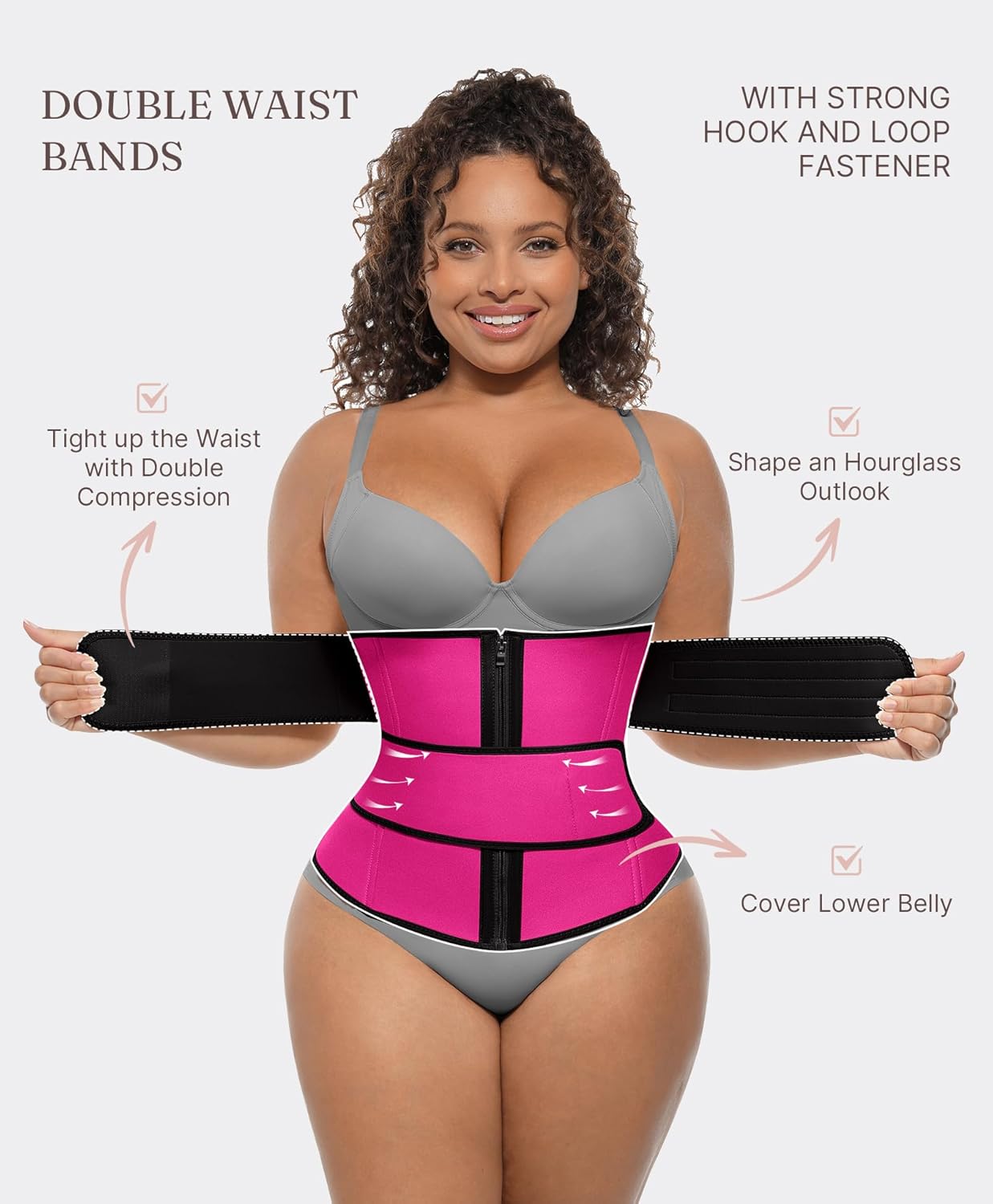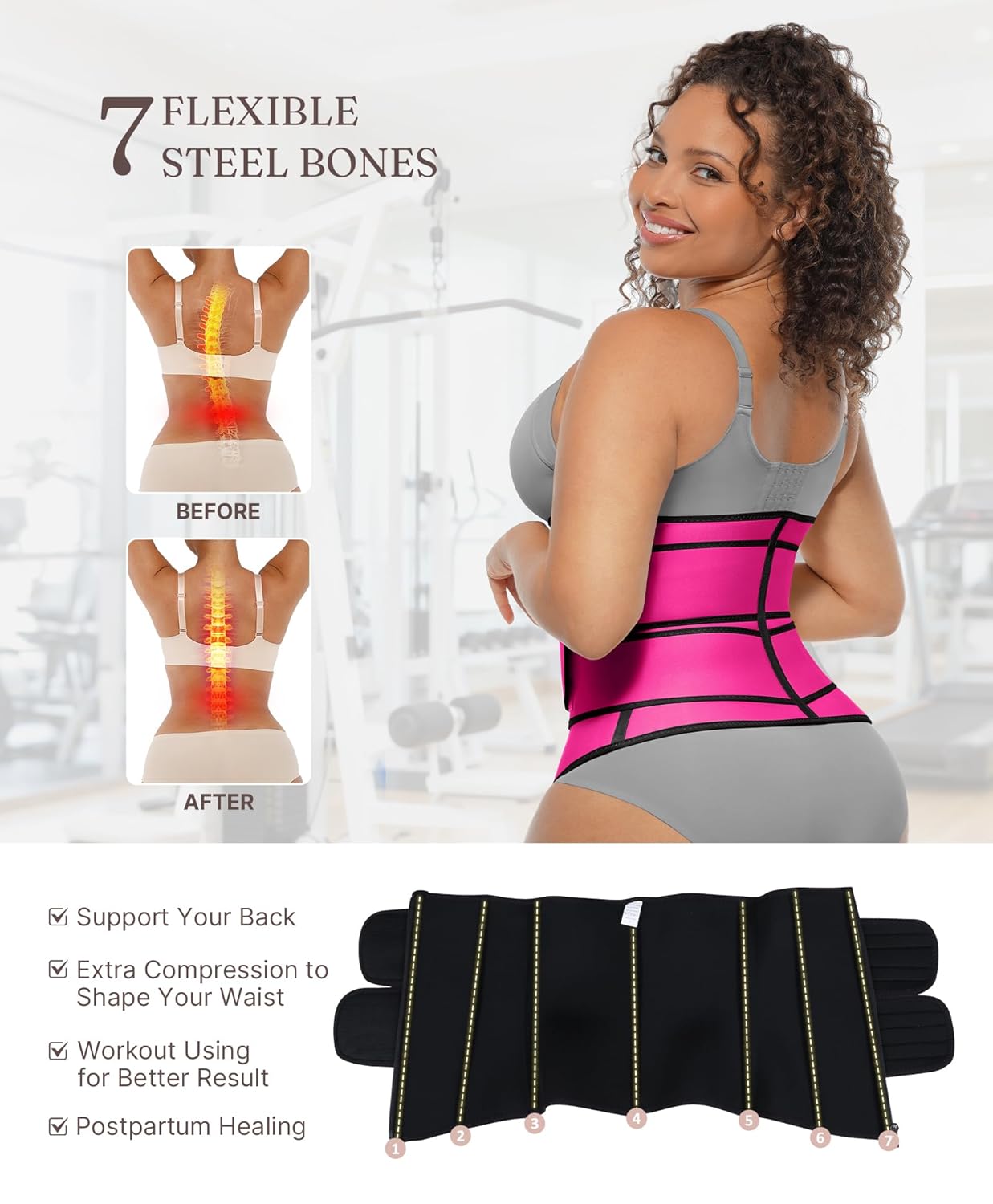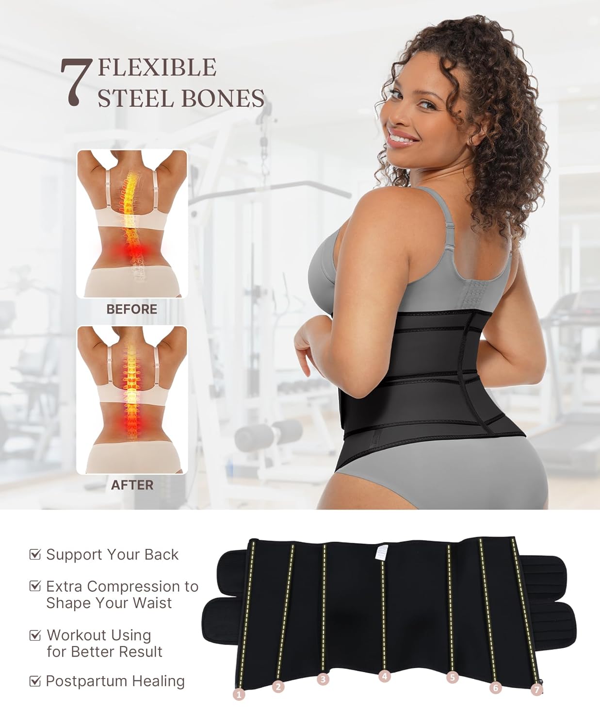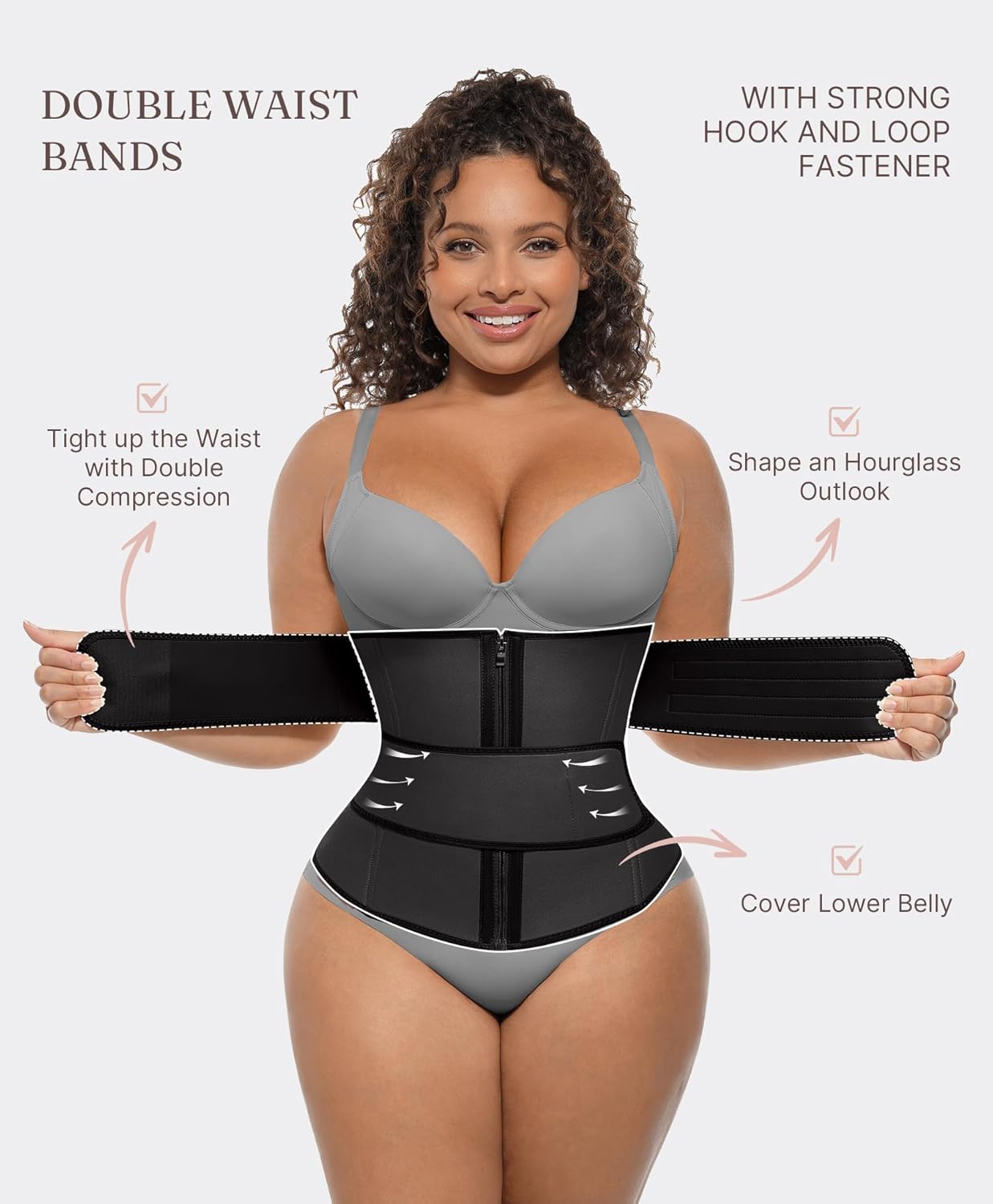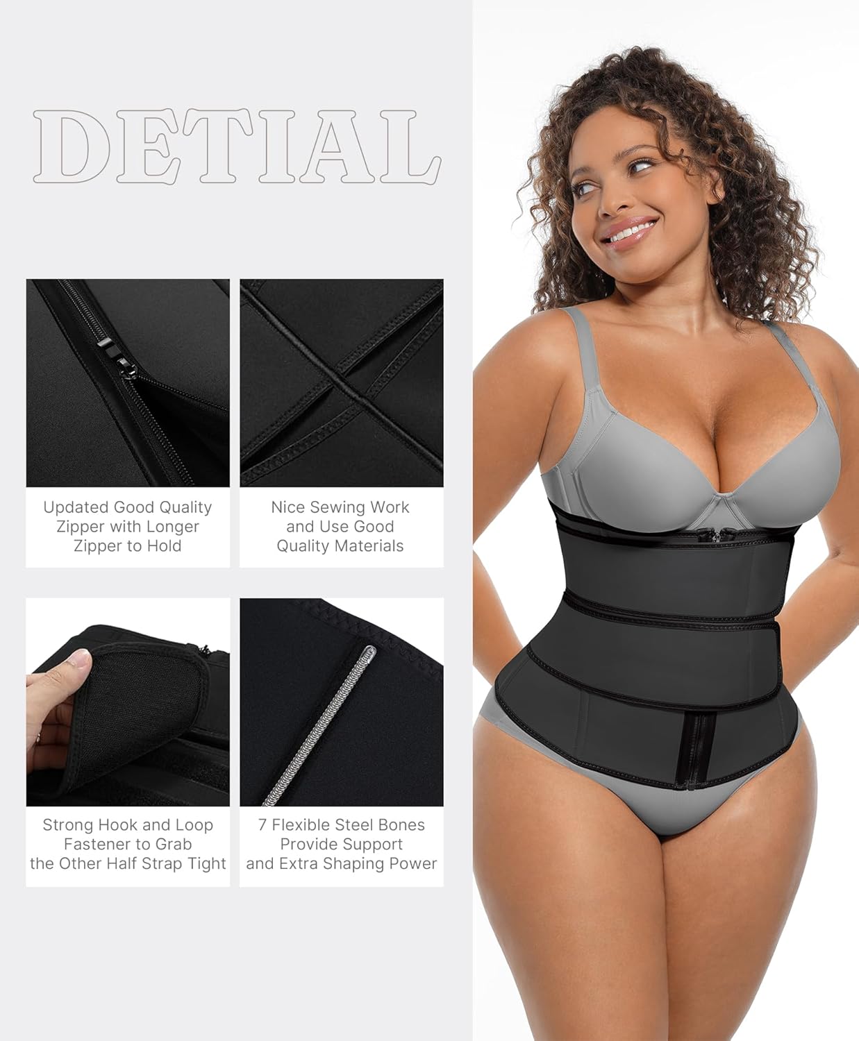 Waist Trainer for Women Belly Fat Long Torso Sauna Workout 2 Belt With Zipper 7 Steel Bones Corset