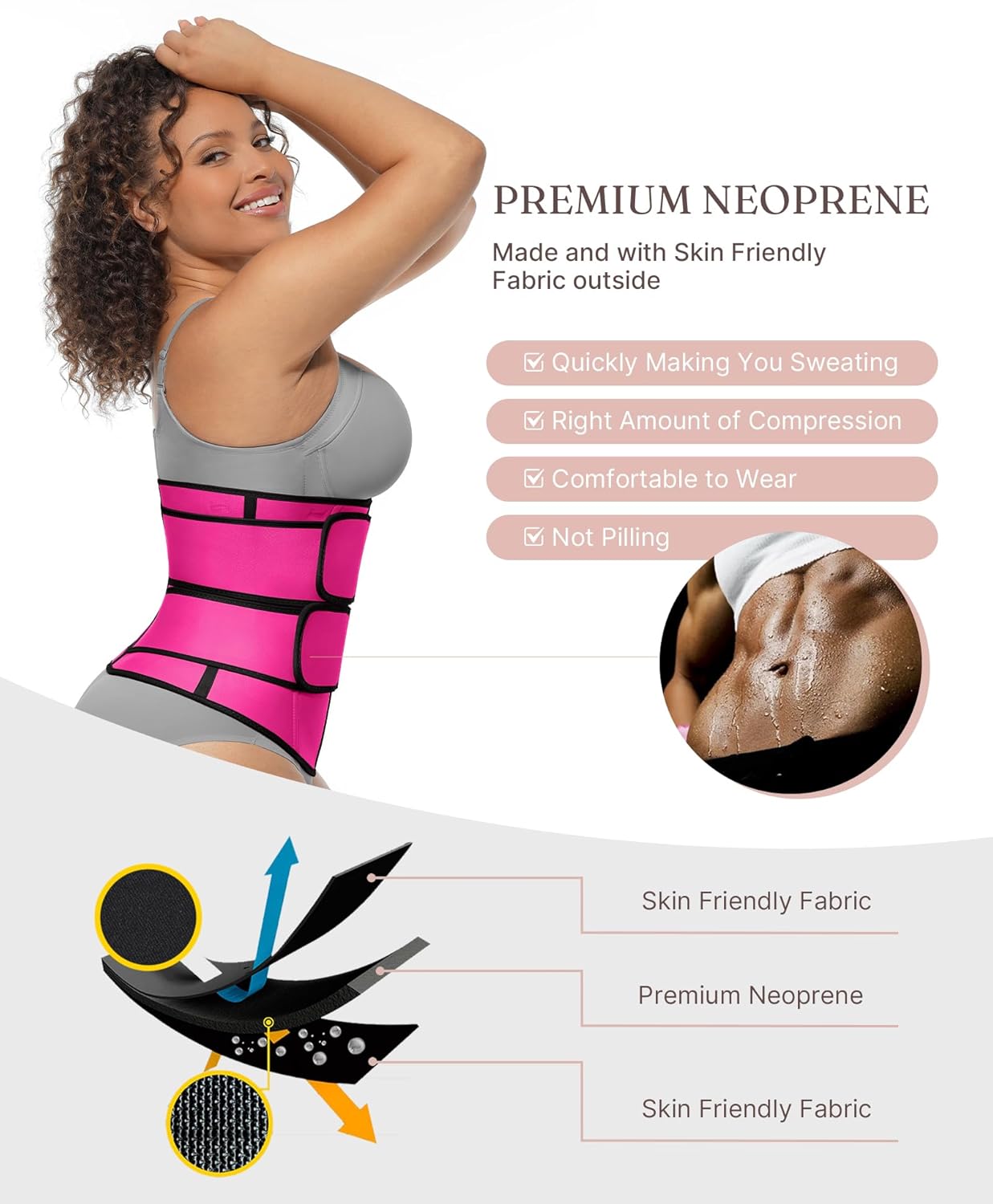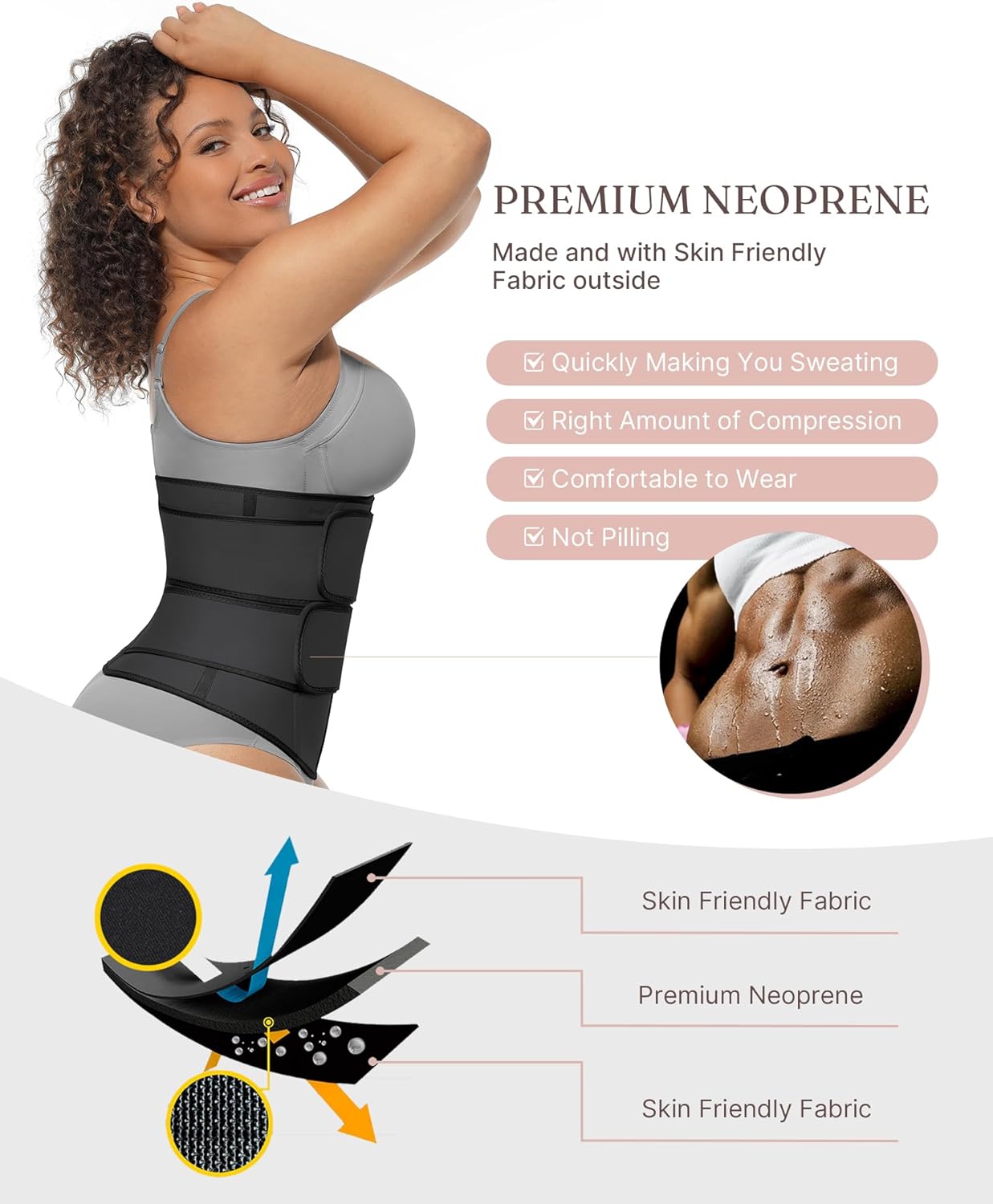 - 2 Belts Compression: The double belt design can enhance the compression around your waist for helping you to control your size and shape. The 13 inches long mid-front bust plus 11.5 inches back mid waistband fit great on medium and long torsos. This workout waist trainer for women is perfect for workout training and also helps the office workers to face the back pains