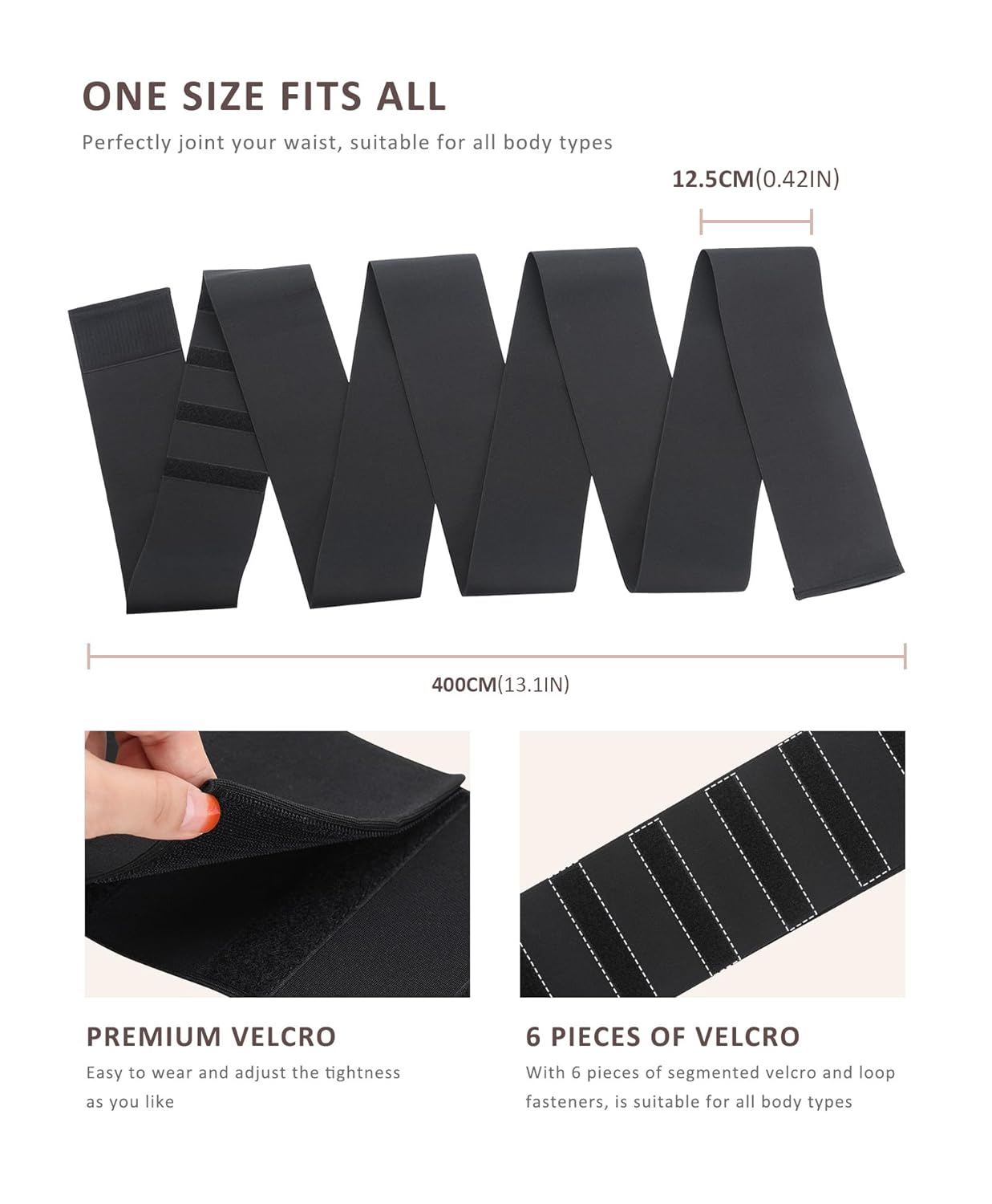 - One Size Fits All, Adjustable: With dimensions of 157.4 inches in length and 4.9 inches in width, our wrap allows you to customize your waist-snatching experience according to your comfort level. It prevents bulging, enhances your exercise routine, and accentuates your curves by improving thermal activity and promoting sweating. Its non-slip feature ensures it stays in place no matter what activity you engage in.