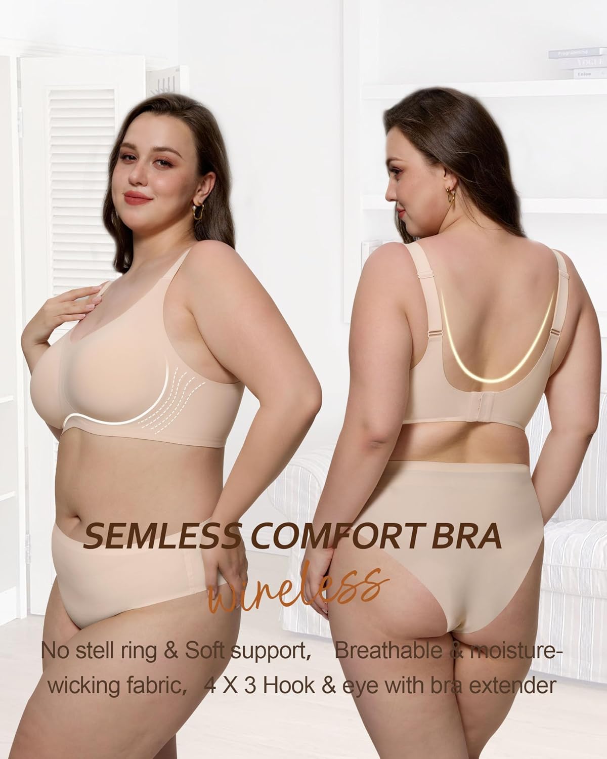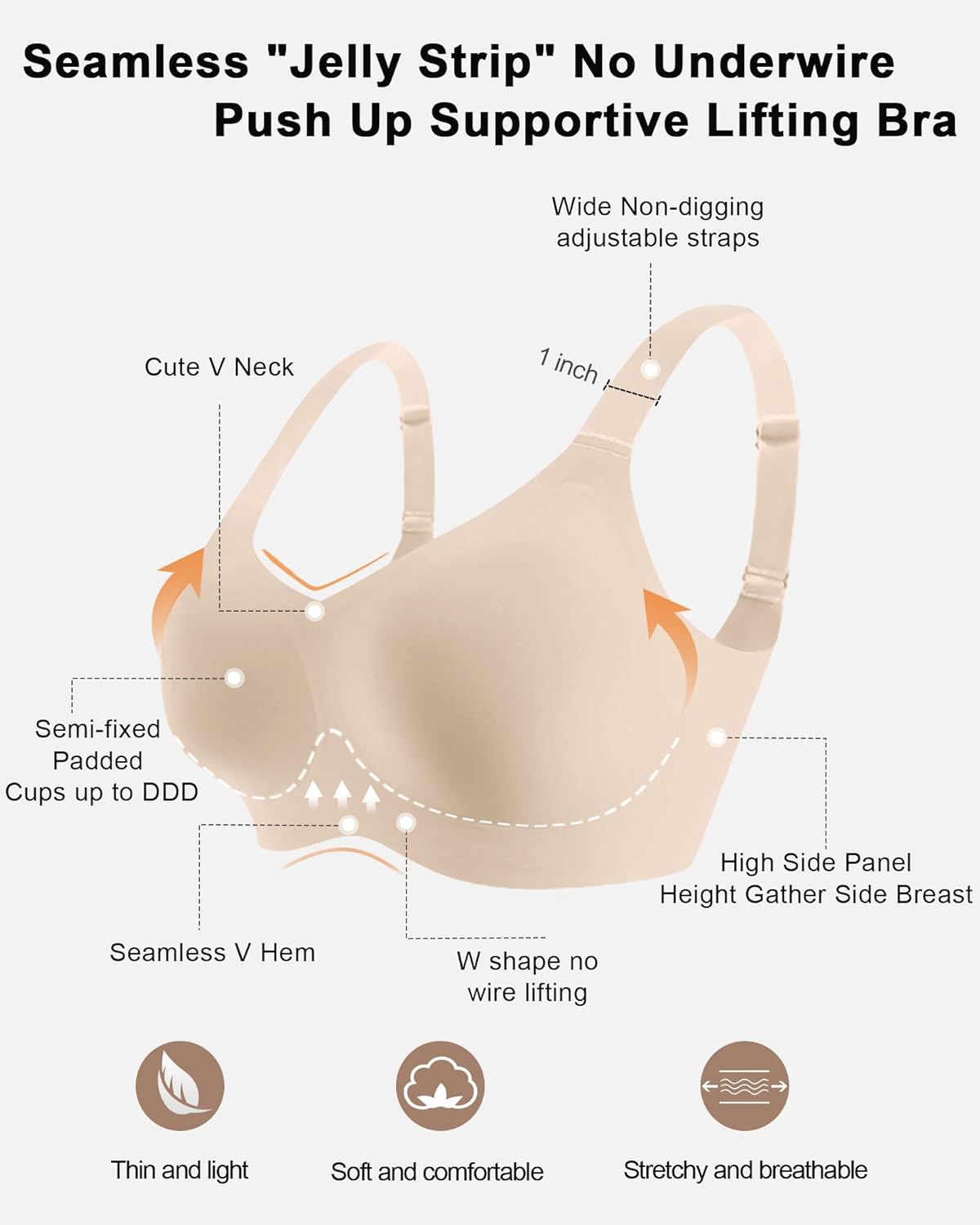 Bras for Women No Underwire Wireless Seamless Wirefree Support Lift Full Coverage Push Up T Shirt Bra