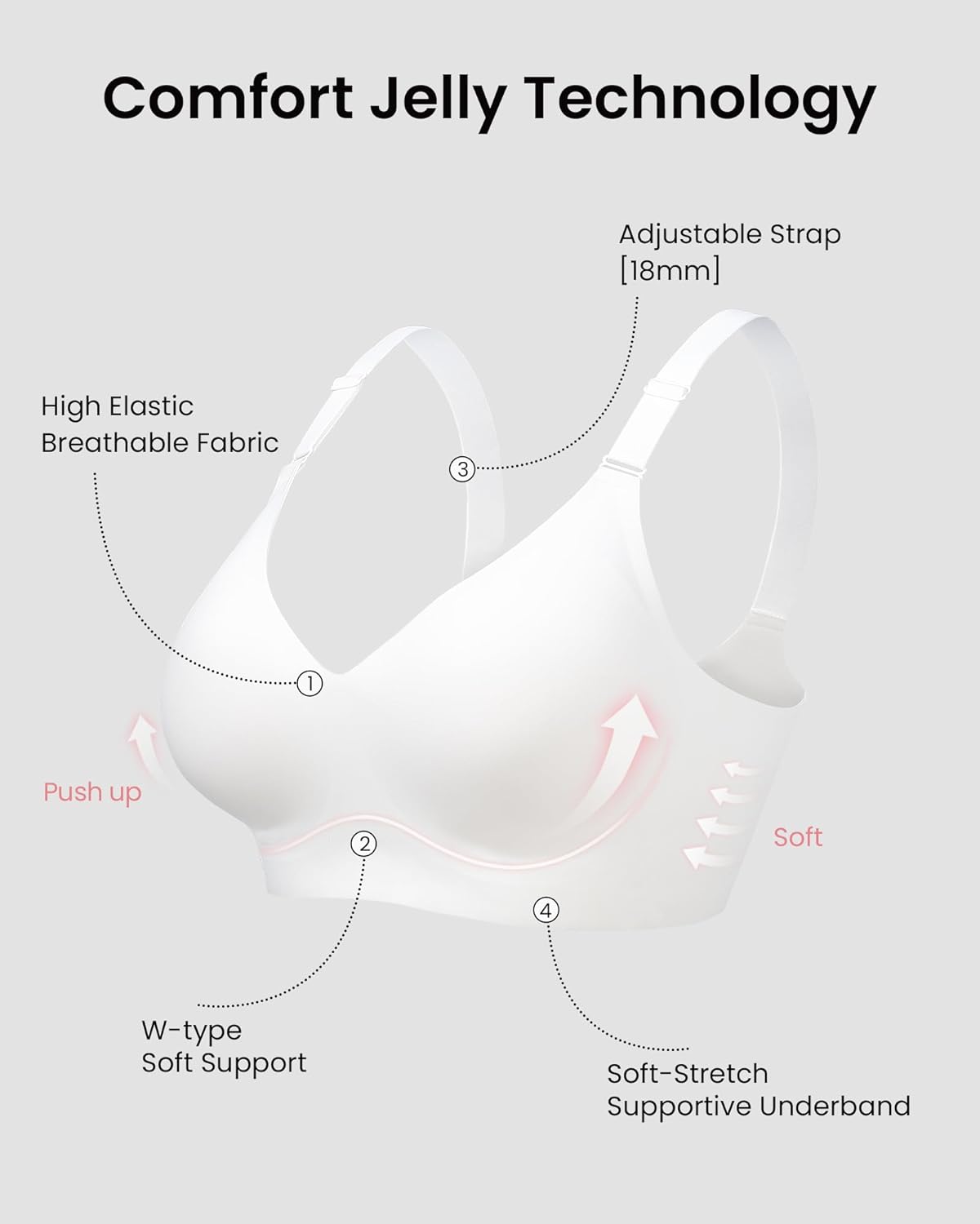 - Jelly Strip Technology: 3D Stretch and total seamless appearance makes this womens wireless push up bra perfectly fits your body shape, V-neck design better shows off your curves