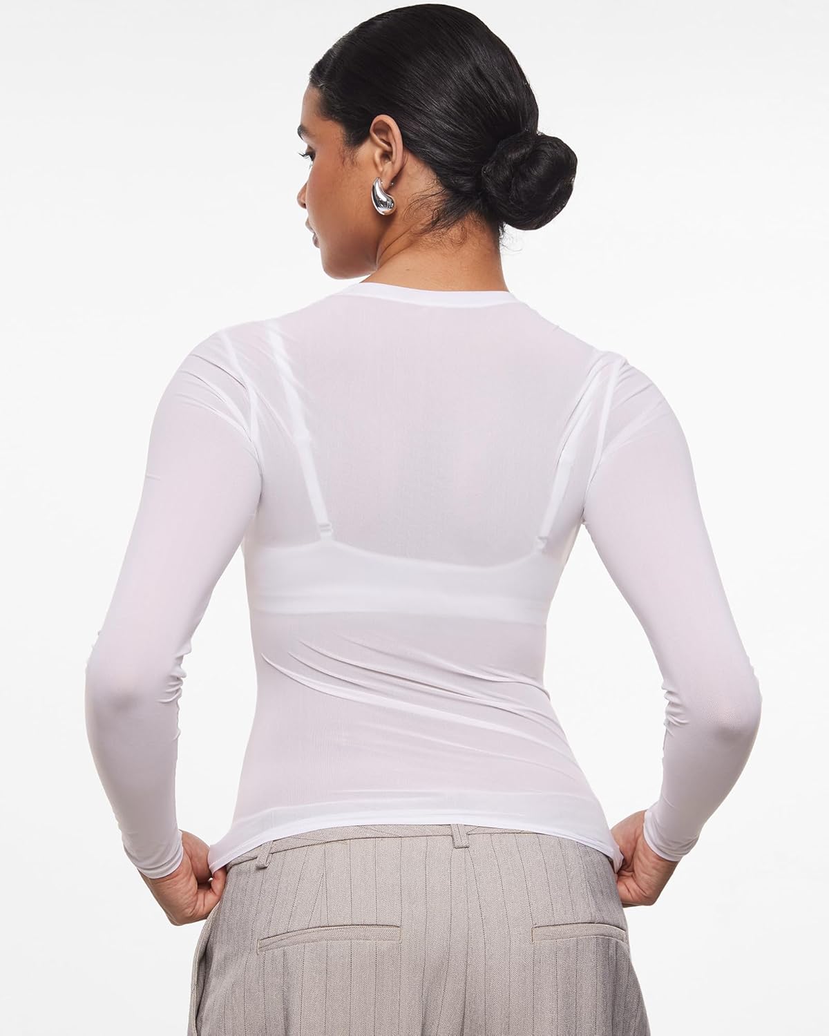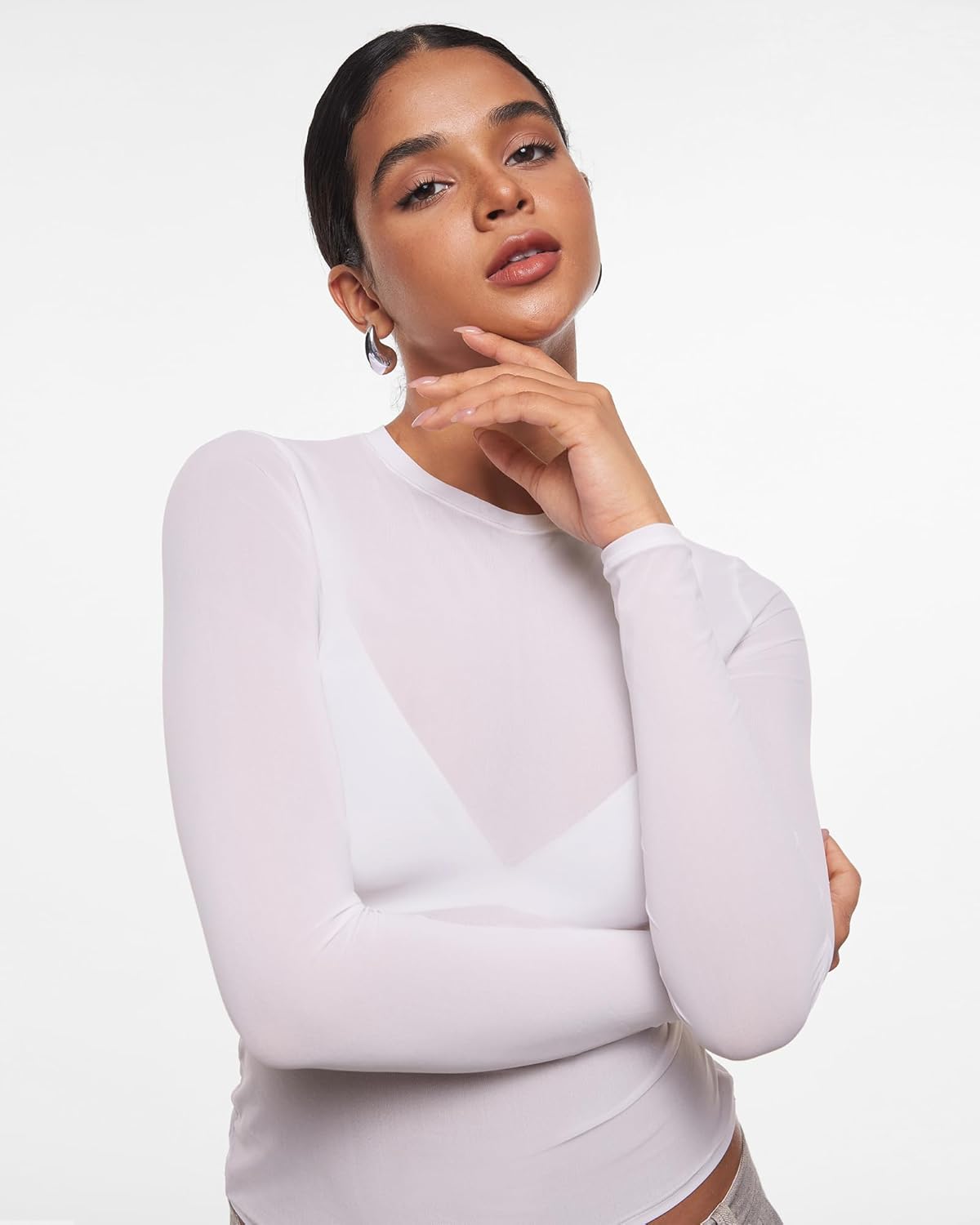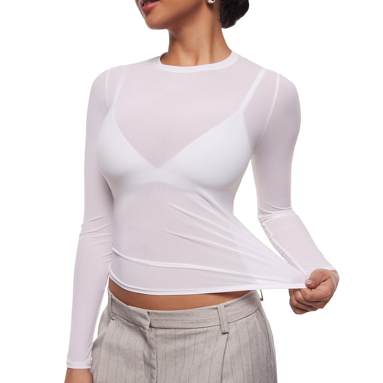 5 reviews for INLYRIC Women’s Cosnufy Mesh Sheer Long Sleeve Tops See Through Crew Neck Going Out Tops Trendy Sexy Shirts