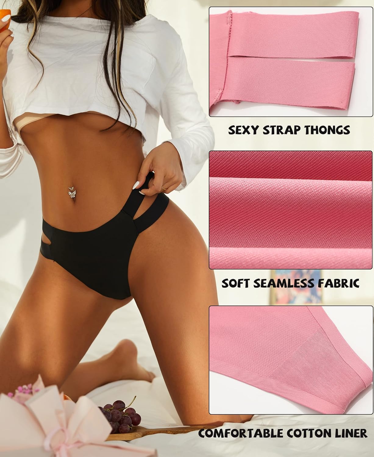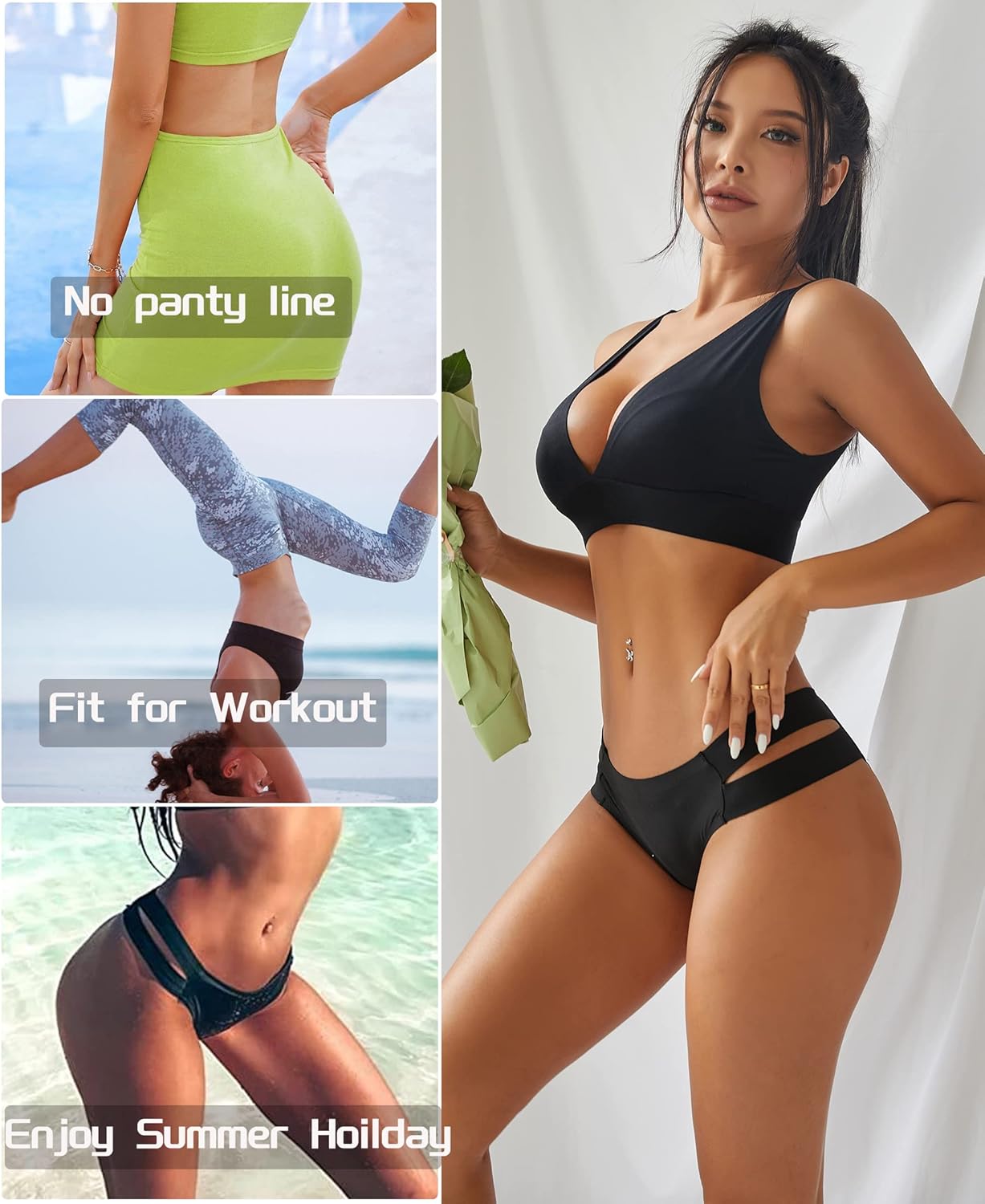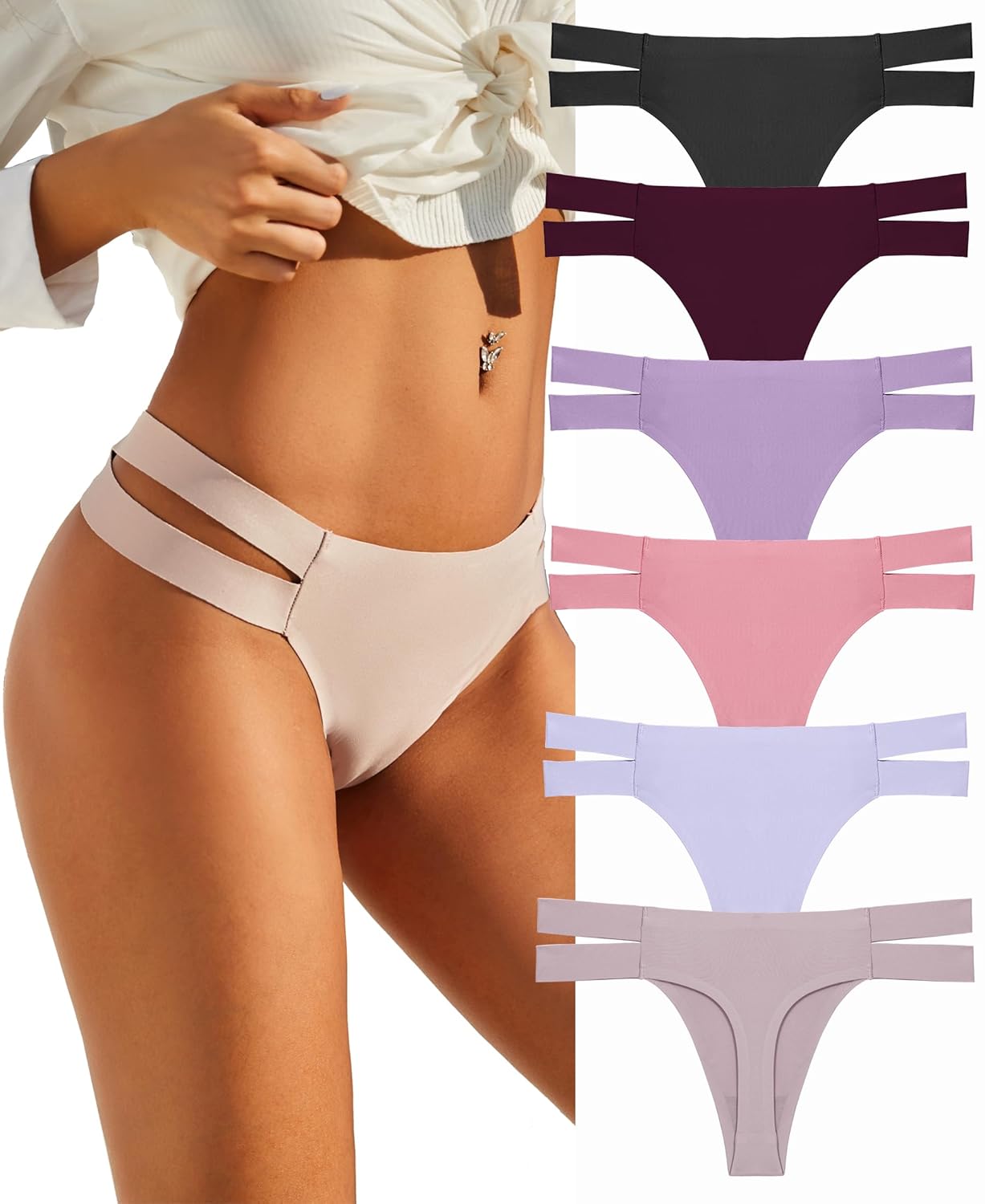 Knowyou 6 Pack Seamless Thongs for Women Sexy No Show Breathable Underwear Stretch Straps T-Back Tangas Panties for Ladies…