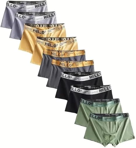- PREMIUM MULTIPACK: Set of 10 comfortable boxer briefs featuring a stylish design and multiple color options including grey, yellow, black, and green