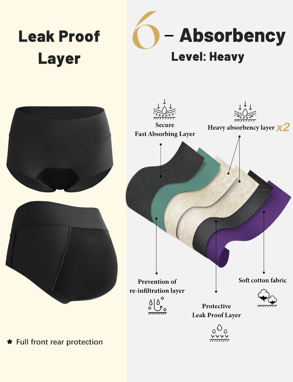 - From front to rear protection: 4mm thickness protection layer provide discreet, non-bulky feeling like the regular underwear, higher absorbent layer and wider leakproof panel makes it easy to deal with daily leaks or mild discharge.