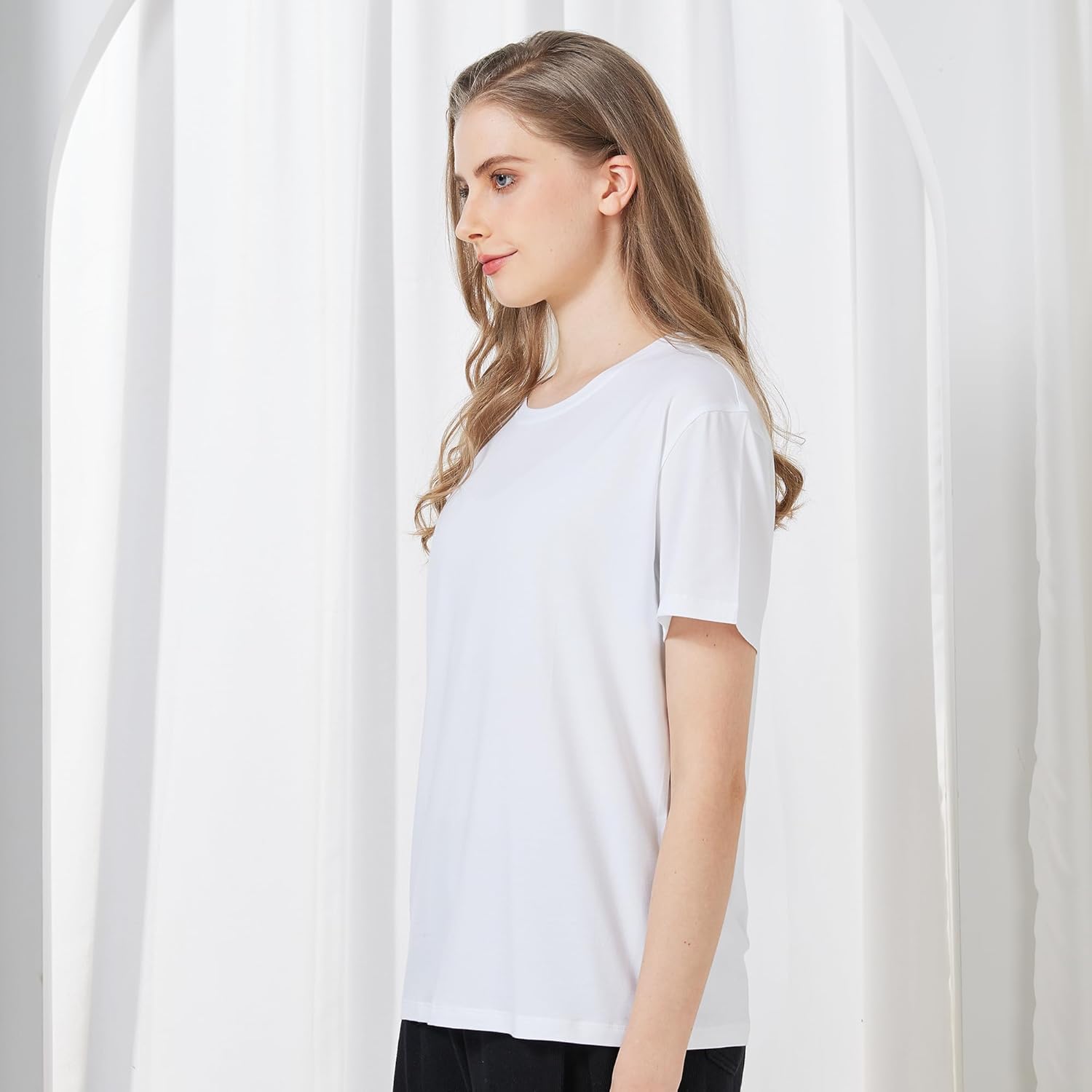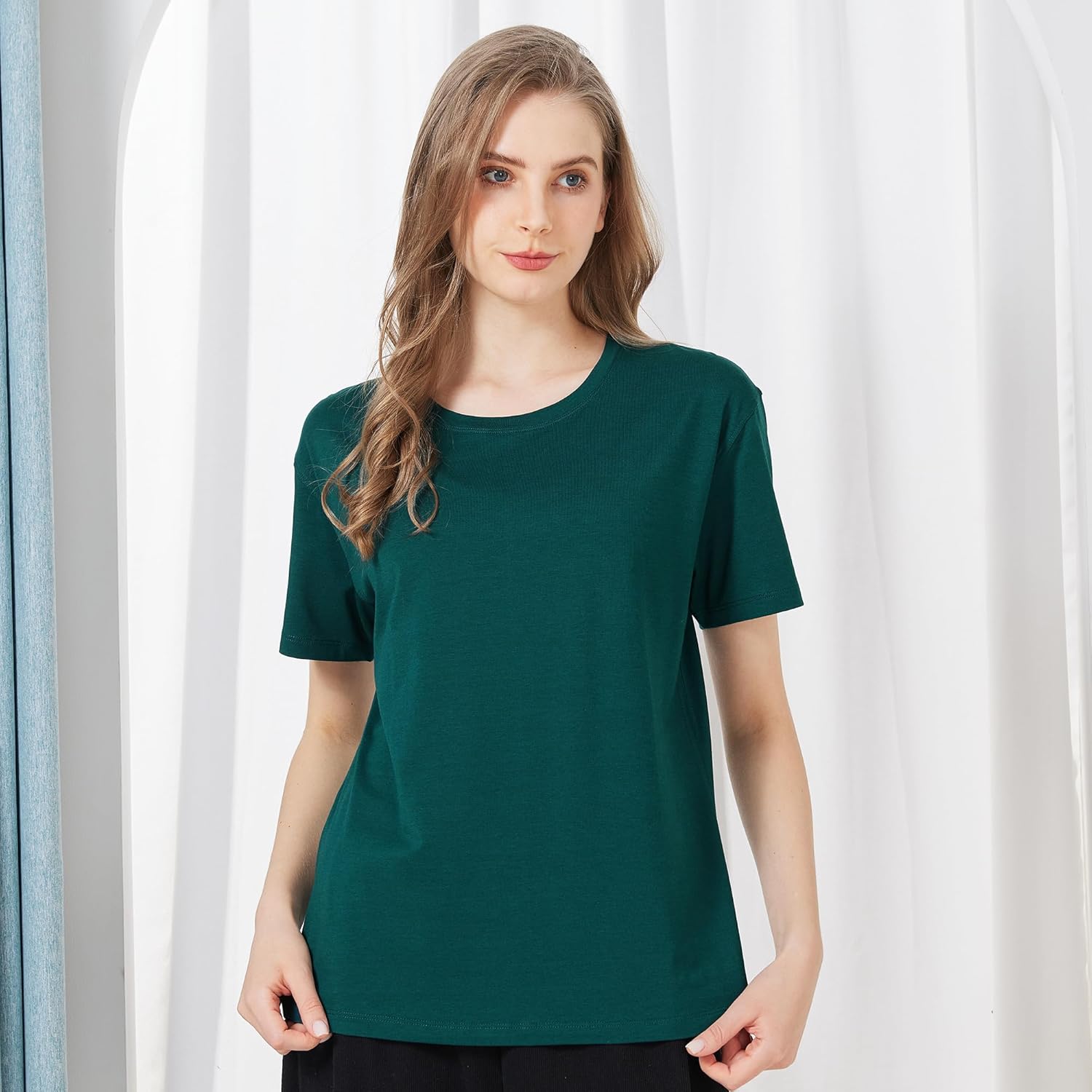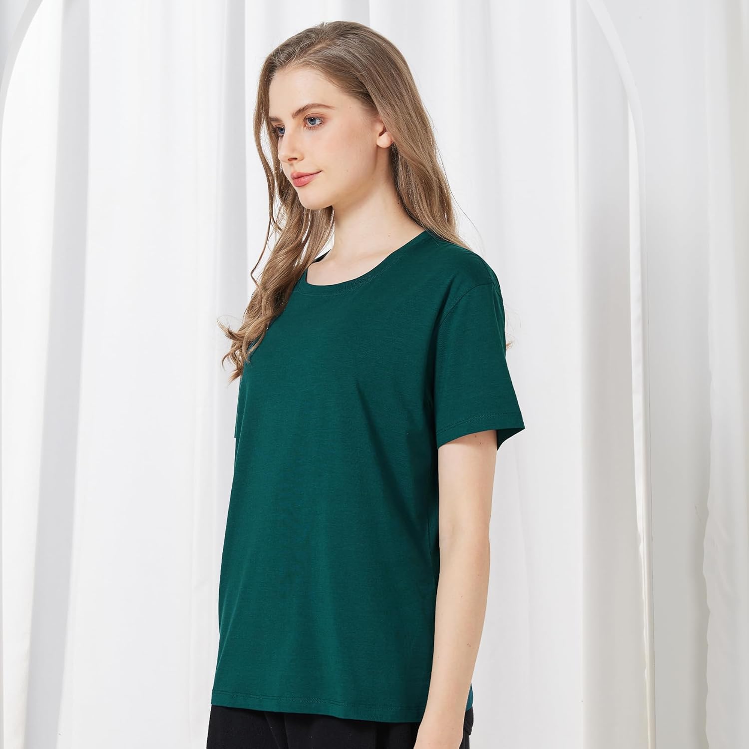 netdraw Women’s Ultra Soft Bamboo Viscose T-Shirt Loose Fit Crew Neck Casual Lounge Comfy Cotton Sleep Pajama Tops