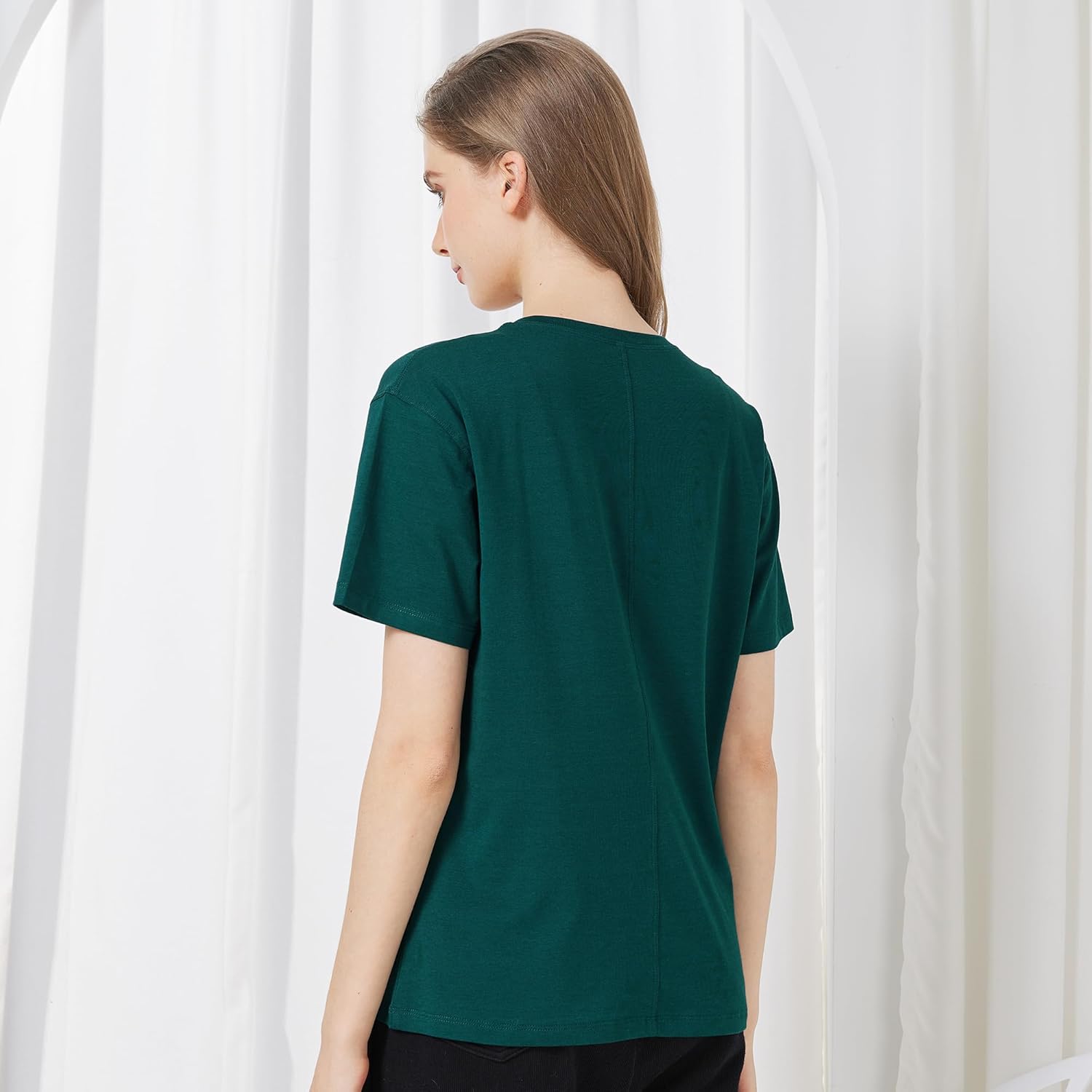 - Trendy Loose Style: Featuring dropped shoulders and back seam details, this loose T-shirt for women offers a trendy, casual look with easy-to-wear silhouettes. Perfect for wearing on its own or layered for added style