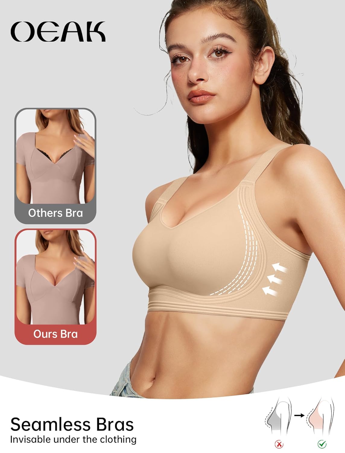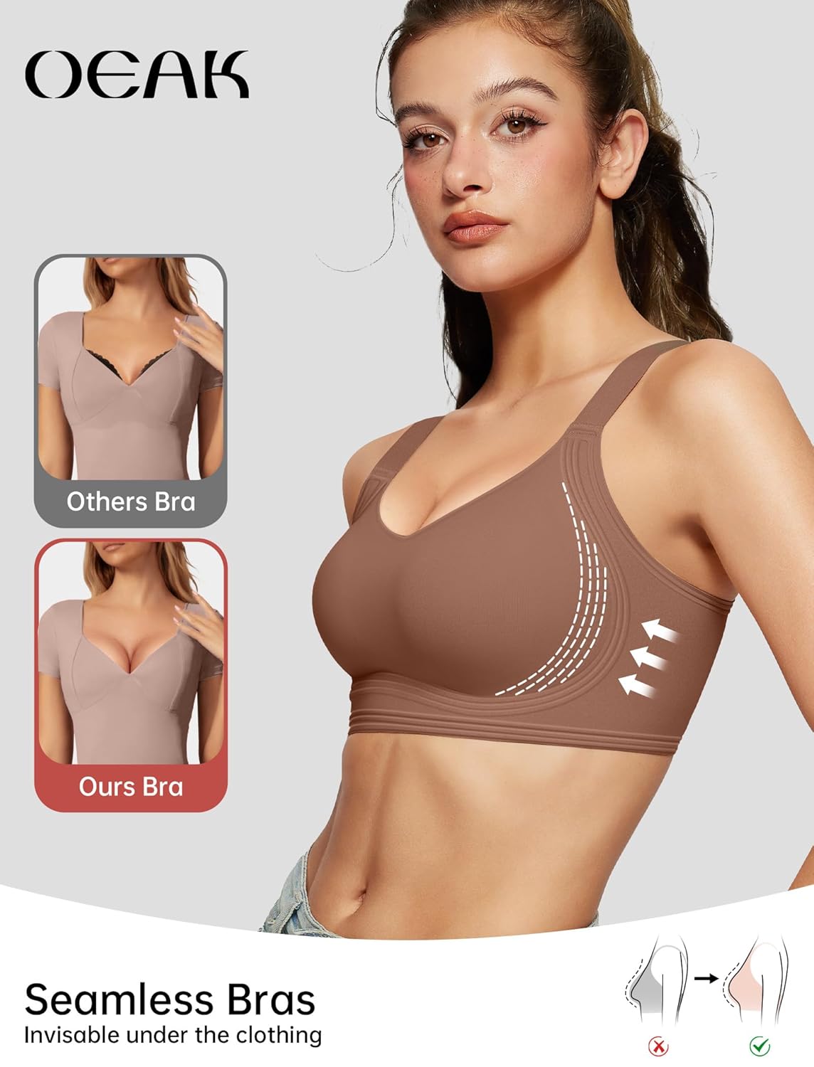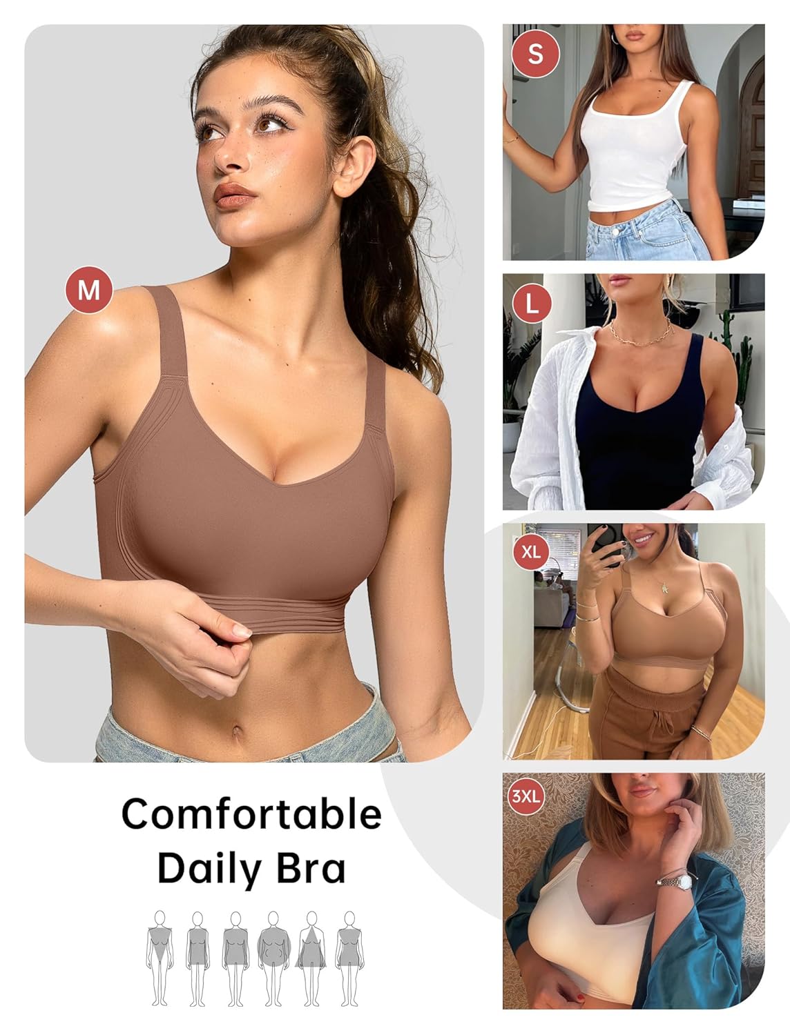 - 【Everyday Bra for All-Day Wear】These seamless bra ensure invisibility under clothing and can be paired with T-shirts, blouses, suits, cardigans, or sweaters, allowing you to effortlessly mix and match different styles. This bra can wear as sleep bras,yoga bras,lounge bra,minimizer bra,everyday t-shirt bras and low impact sports bras or working out bras,