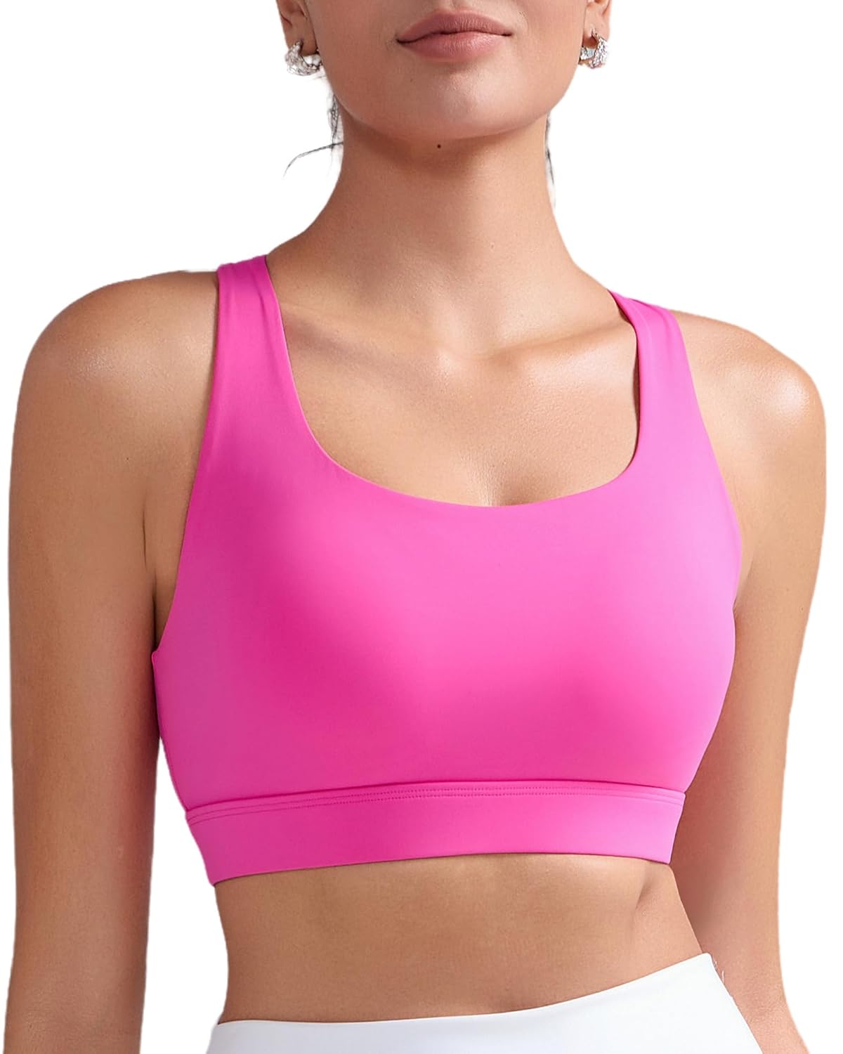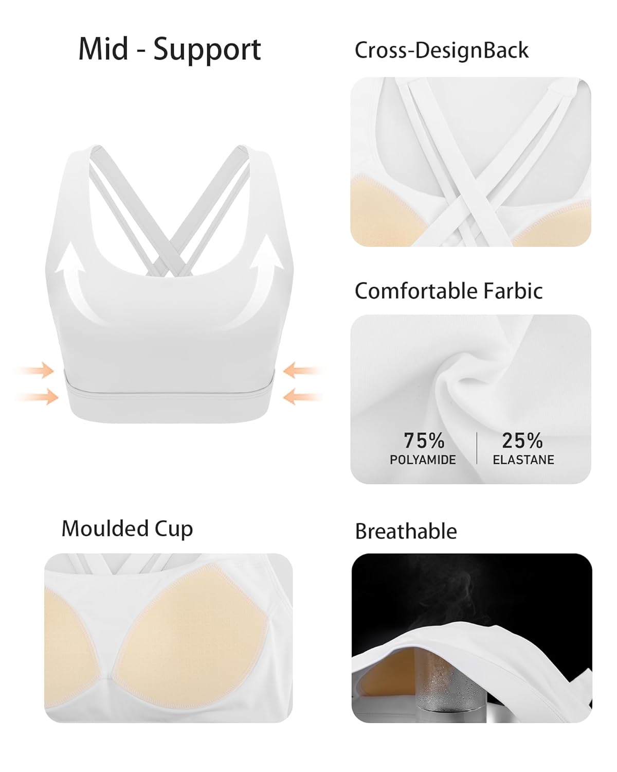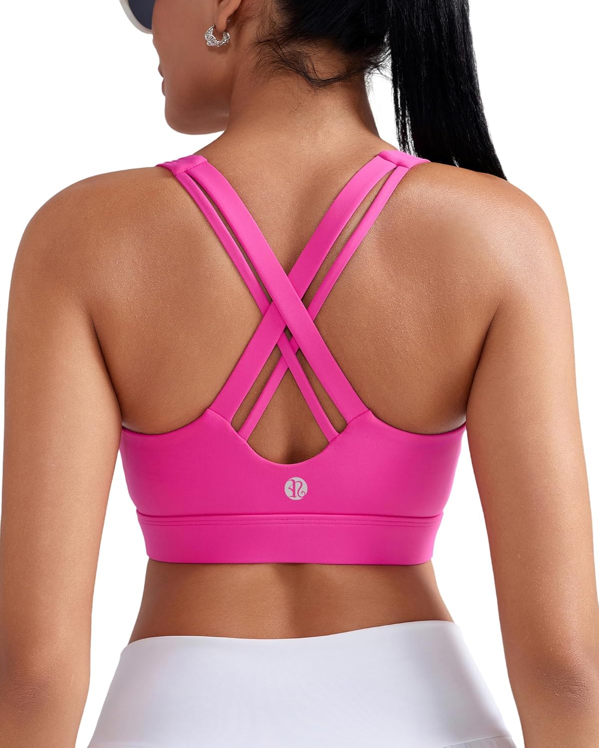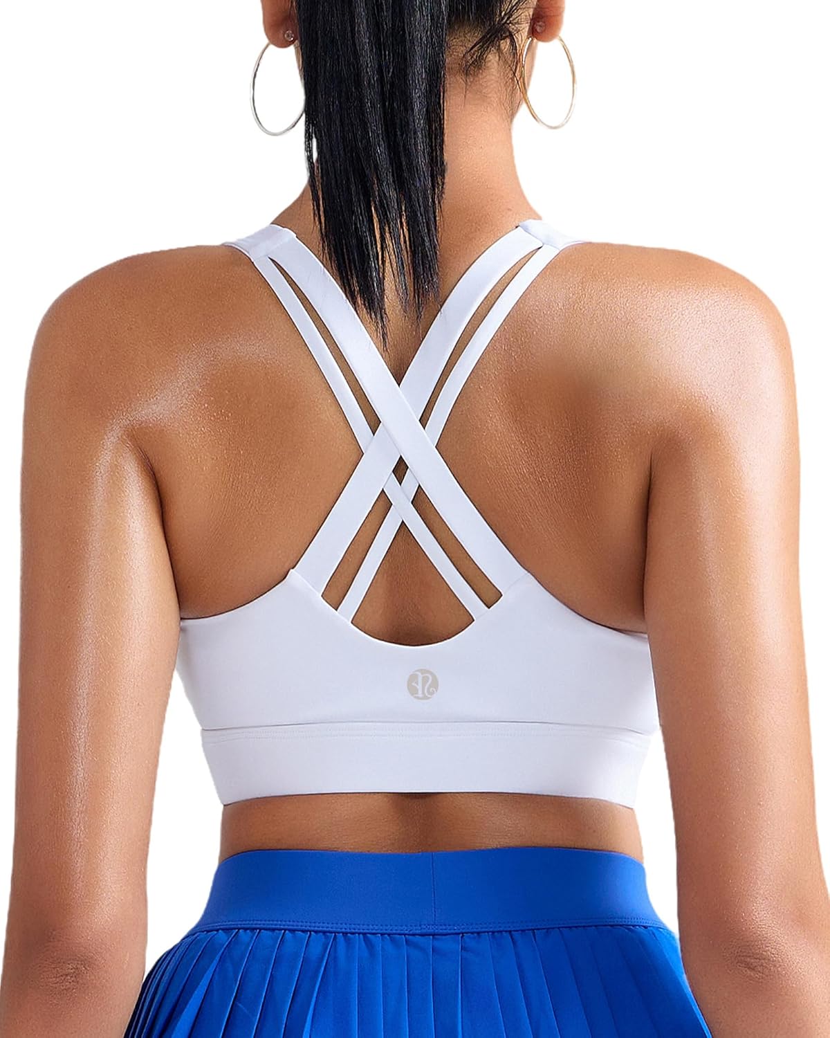 GIRL High Impact Sports Bras for Women,Criss Cross Back Molded Cup Running Bra with Sewn in Pads