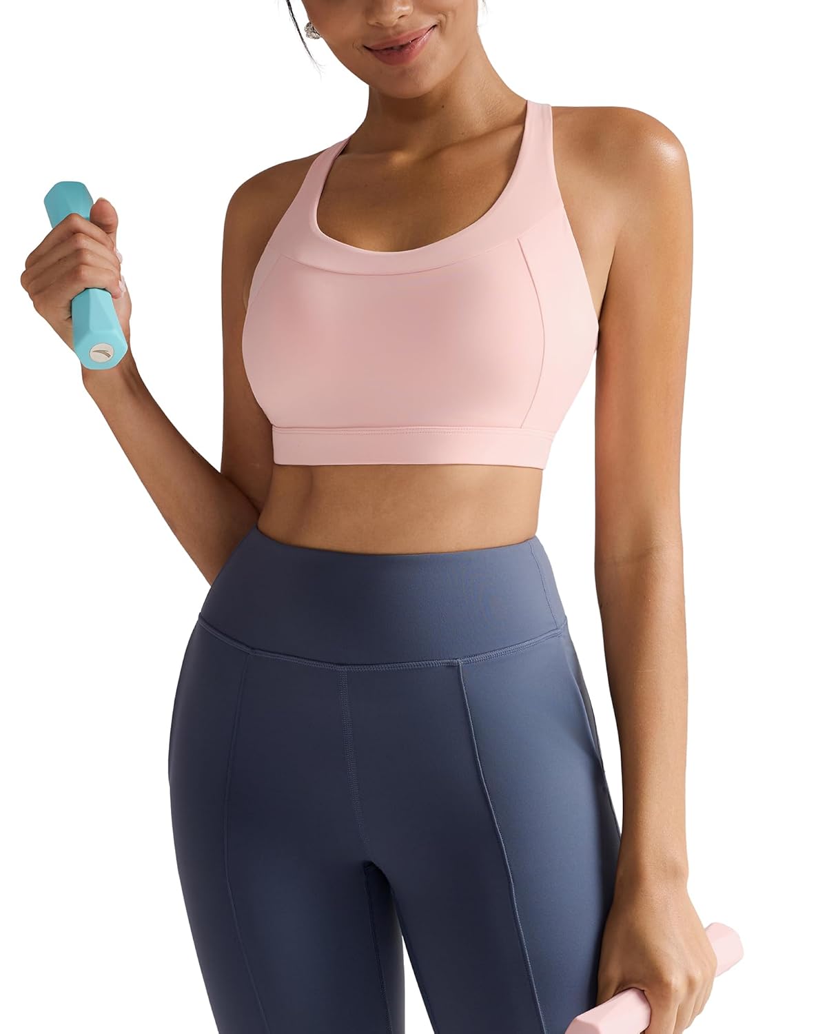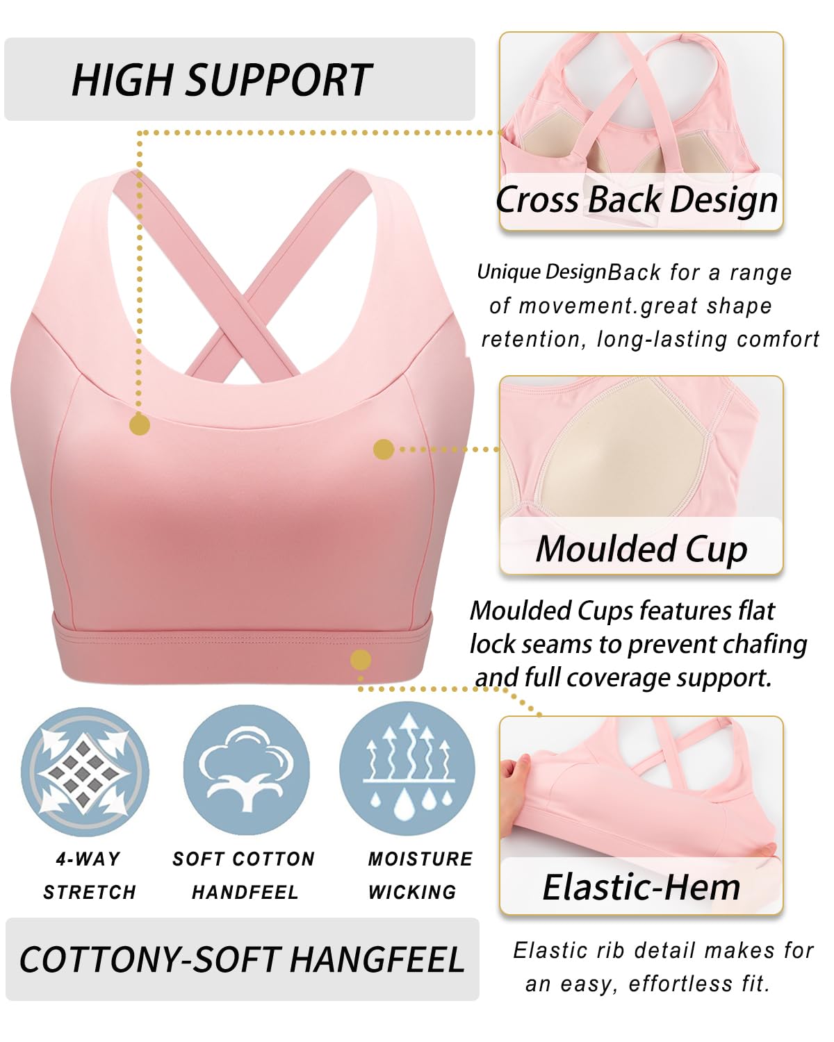GIRL Sports Bra for Women High Support,Molded Cup High Impact Sports Bras with Sewn in Pads