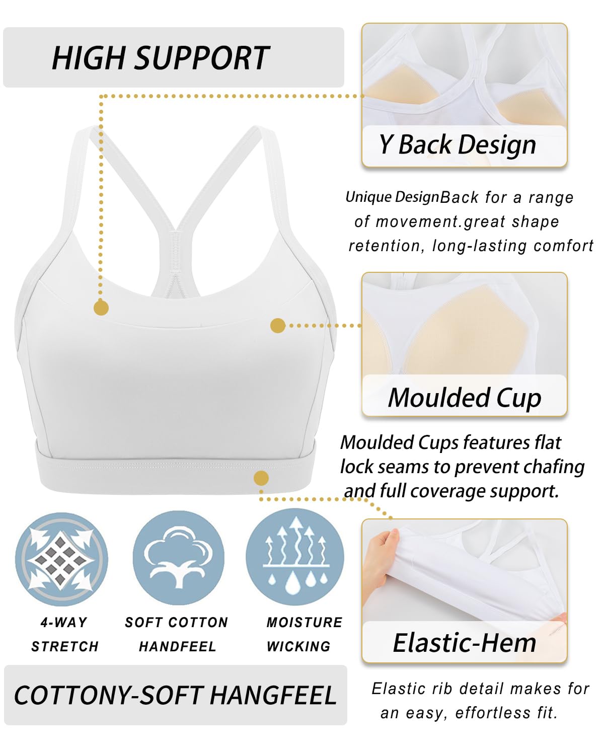 - WHAT CAN WE OFFER YOU:Moisture-wicking Technology Metial Which Mean that You Can Enjoy Keeping Your Body Cool & Dry.Super Soft Elastic Band for Comfort & Movement Which Will Allow You Can Enjoy Sinking into Your Practice without Sacrificing Comfort. Built for High-Impact Support so You Will Get Staying Fit & Focused.We Wear-tested by Our In-house Team for the Perfect Fit,Goodbye Old Bra!!