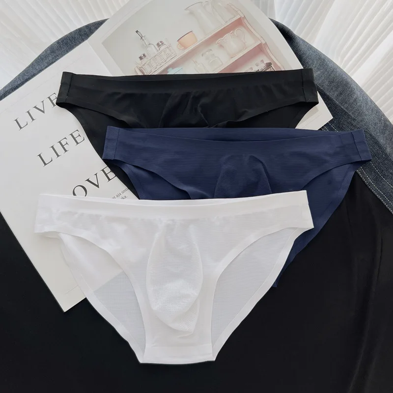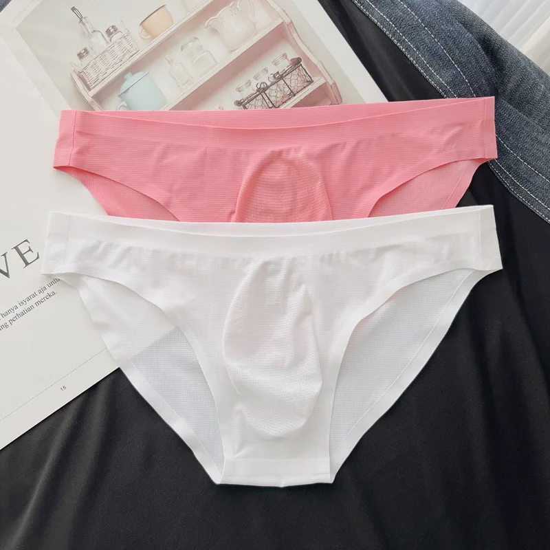 Sexy underwear for men mesh thin ice silk cuecas one piece seamless breathable underpants sissy Men’s panties boxers & briefs