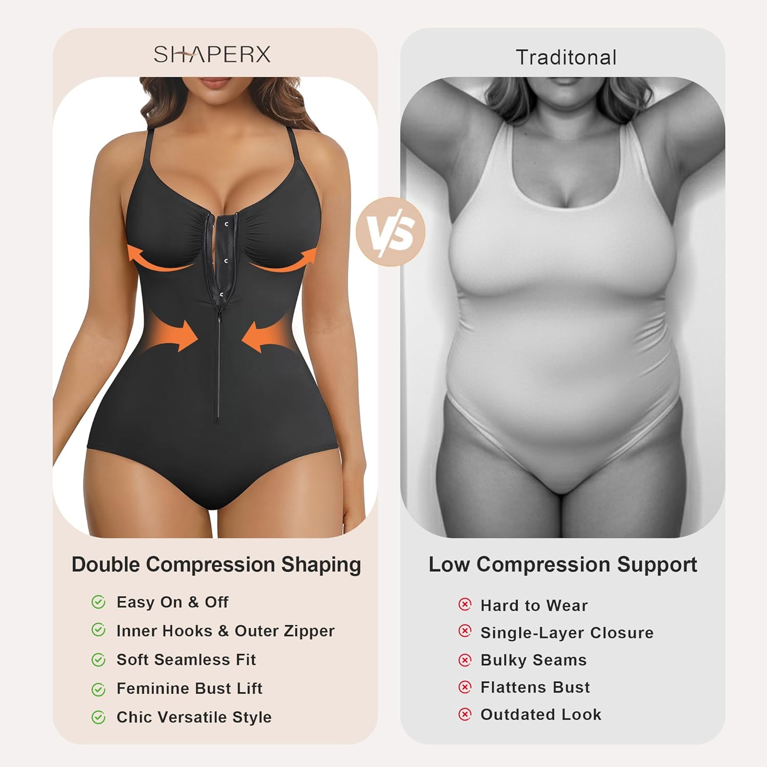 - Dual Closure Sculpting Bodysuit for Stronger Tummy Control: This shapewear bodysuit features inner hooks + front zipper for a corset-like effect. Reinforced coarse-thread panels provide stronger pull resistance for firm tummy control and a dramatically snatched silhouette, perfect under dresses or workwear.