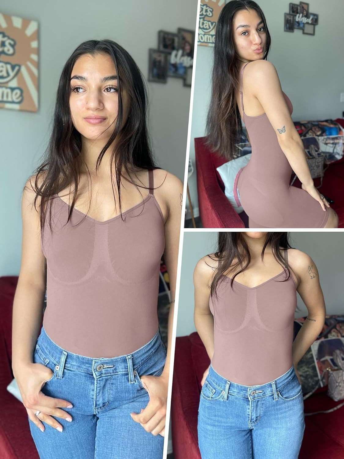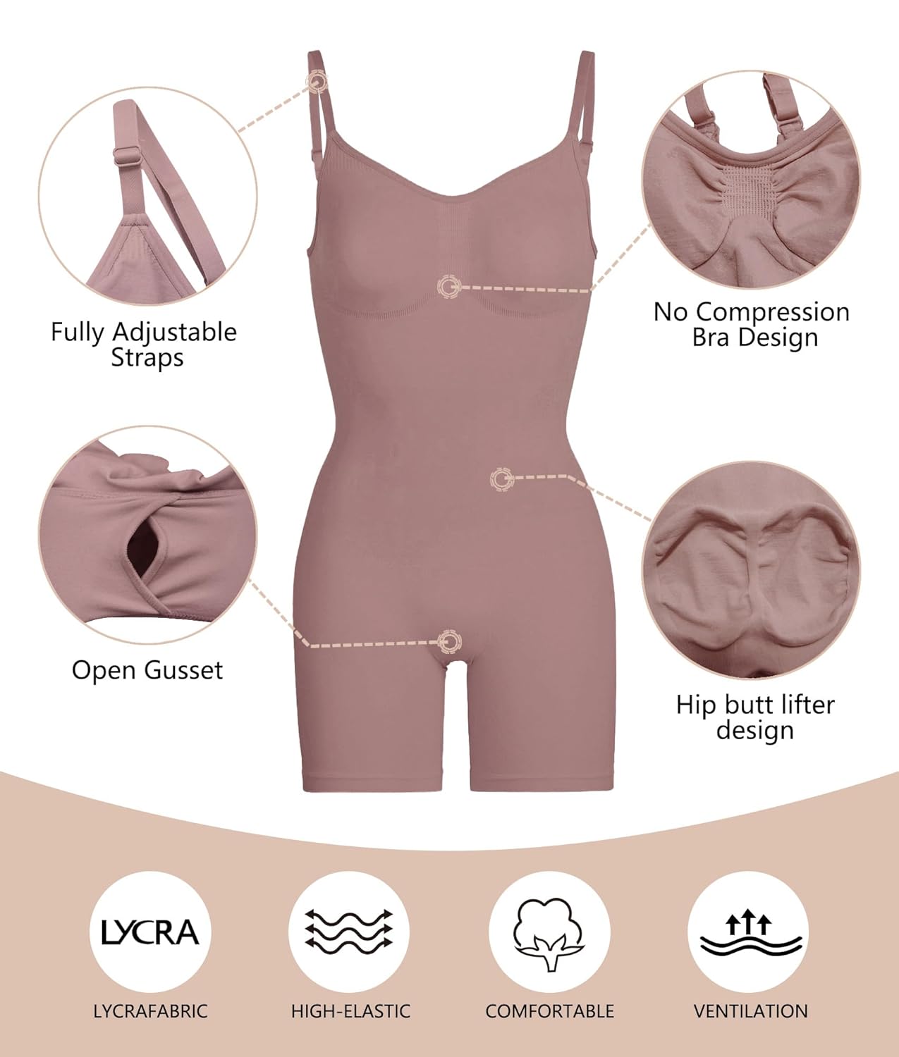 - Occasion: The body-shaping bodysuit is invisible beneath your daily clothes because of its seamless surface, light color, and length. You can wear it anywhere with any outer clothing, such as shorts, low-cut blouses, skirts, or knee-length dresses. It fits Office, Daily Wear, Sleep, Party, etc.