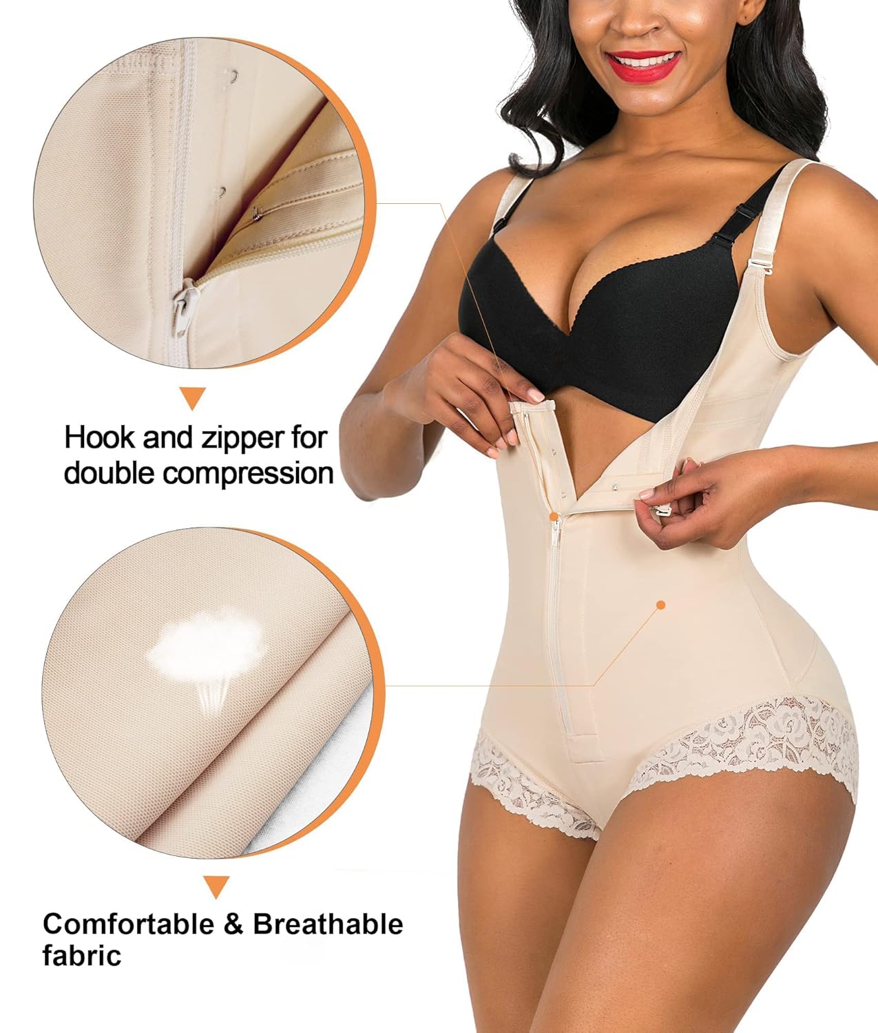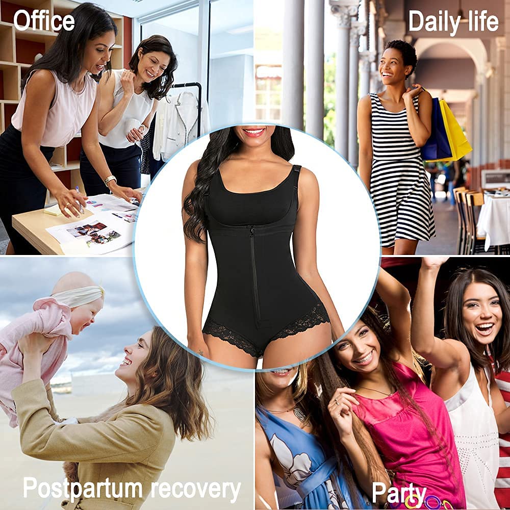 - FIRM CONTROL & COMPRESSION: Fajas bodysuit trim waist, compress belly and lift the butt, and Outer with zipper inner with hooks design for specifically shape the midsection with targeted double tummy control to support and compression your waist.