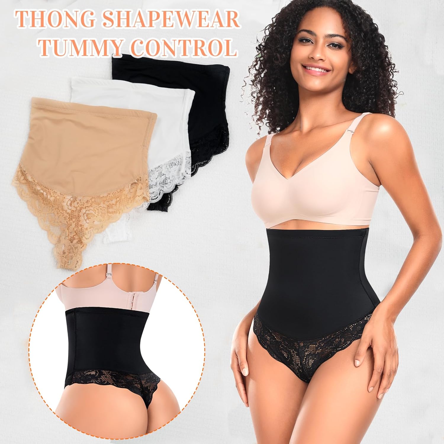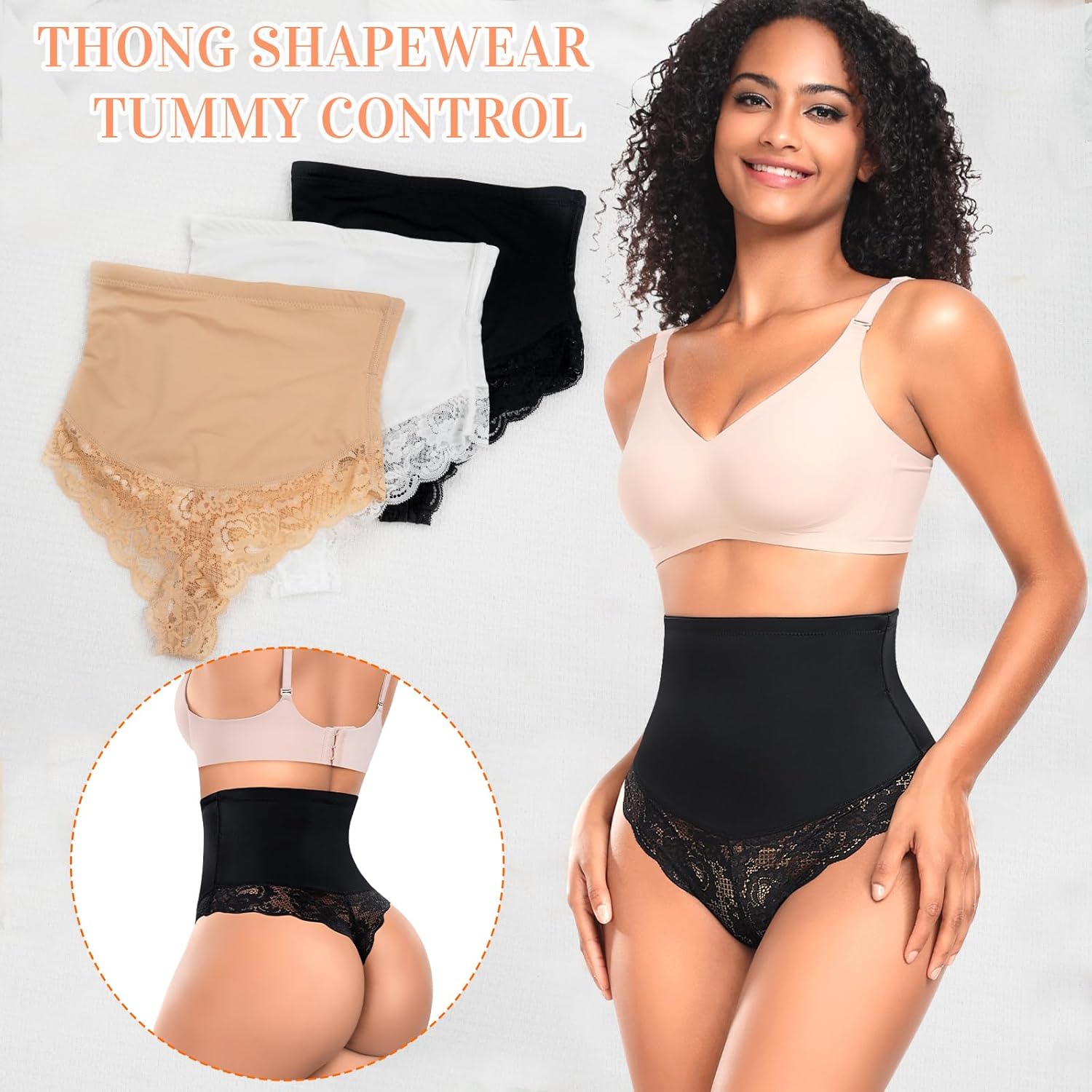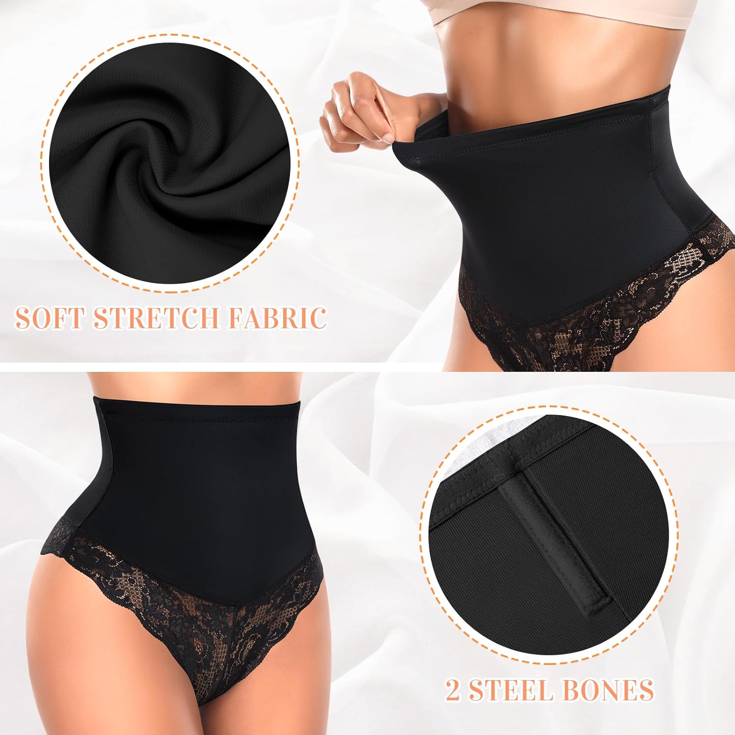 Tummy Control Thong Shapewear for Women High Waisted Body Shaper Panties Lace Shaping Thong Girdle