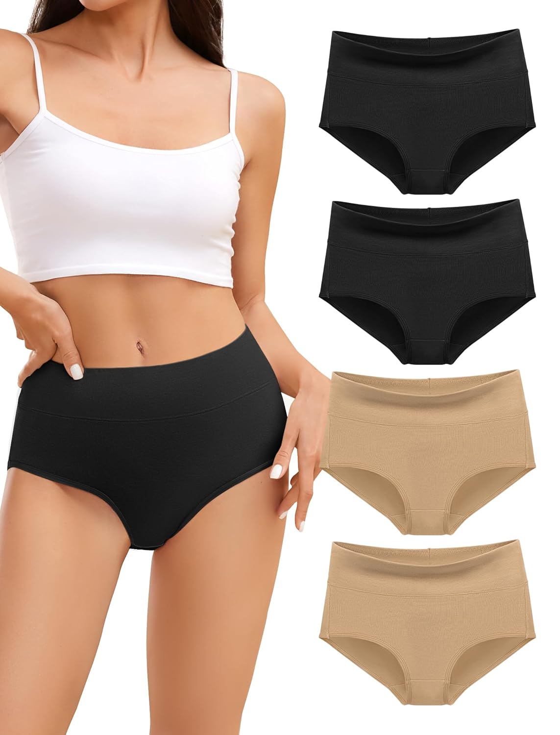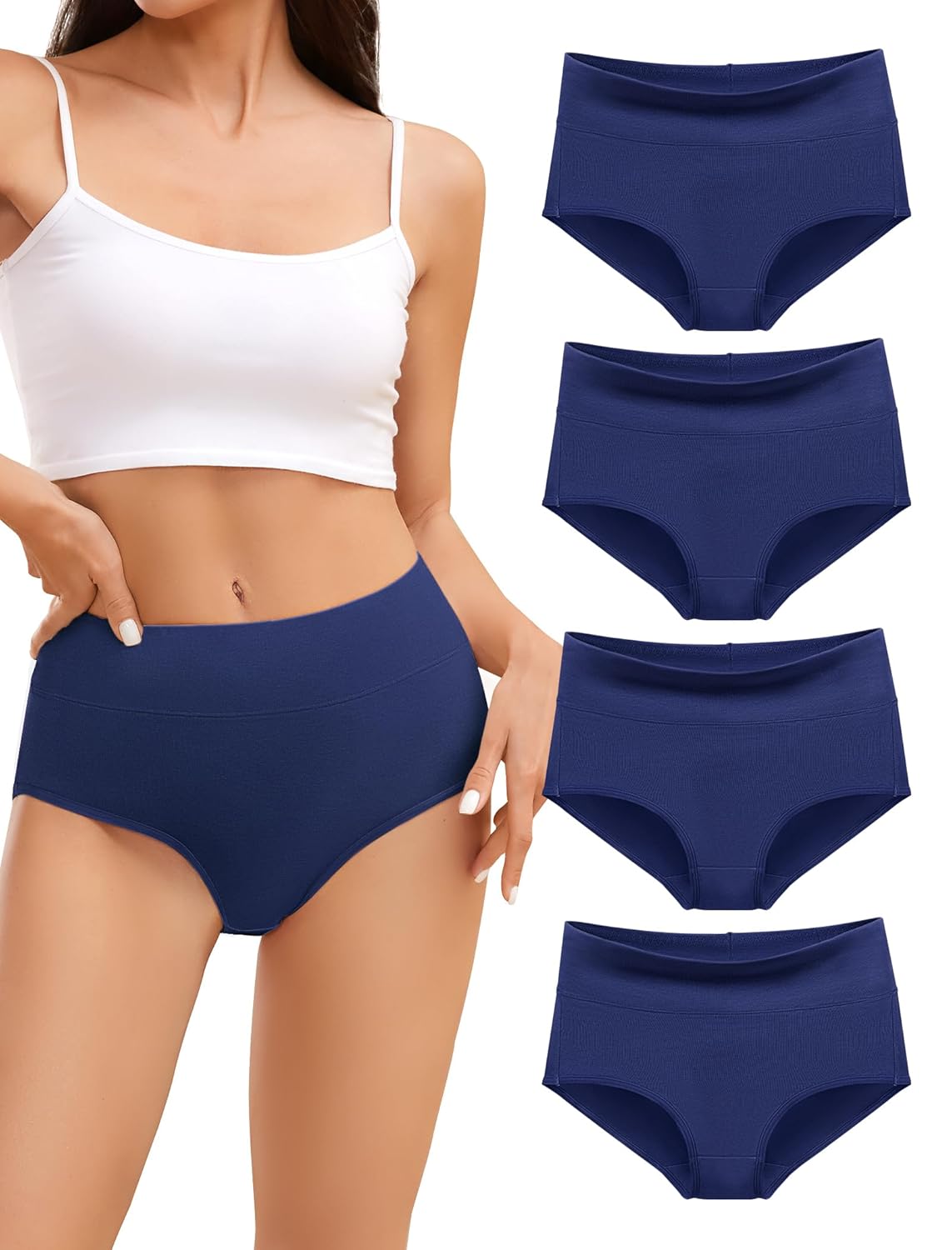 Cotton Underwear for Women,High Waisted Ladies Panties,Breathable Soft Full Coverage Briefs,Comfy Underpants,4 Pack