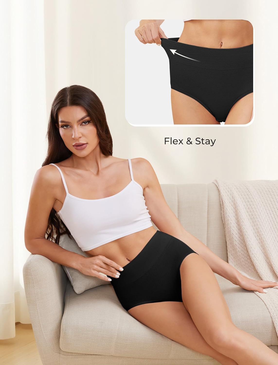 - Stay-Put Fit and Comfort: Our panties feature a no-ride-up design with a double-layer crotch for added protection. Enjoy chafe-free leg openings and a high-waist full-coverage fit that stays in place all day. Perfect for home, bedtime, and everyday wear.