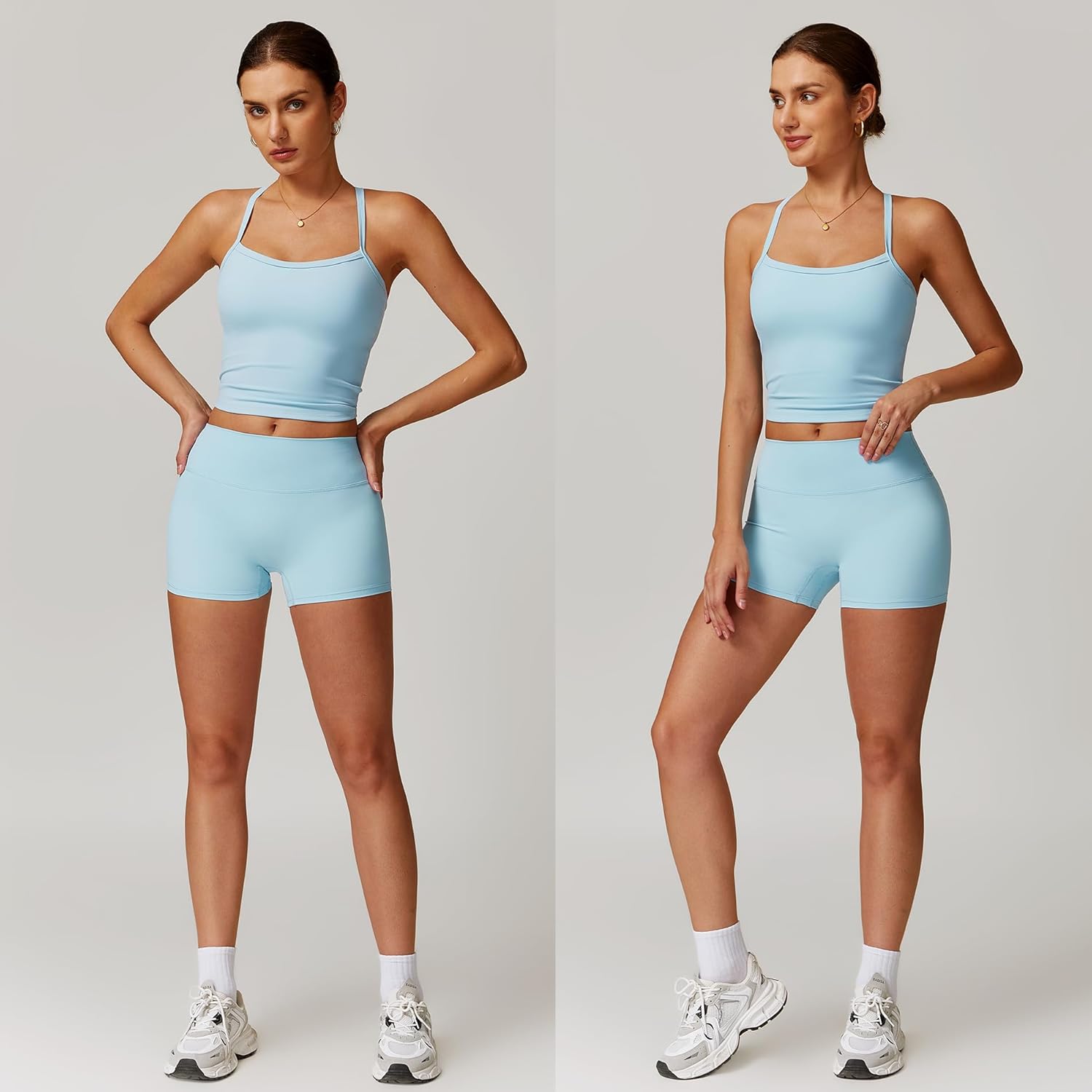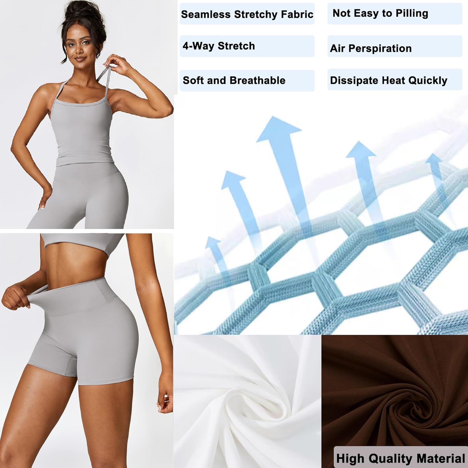 Women 2 Piece Workout Sets (2025 NEW) Yoga Outfit Open Back Tank Top High Waisted Shorts Gym Sets Tracksuits